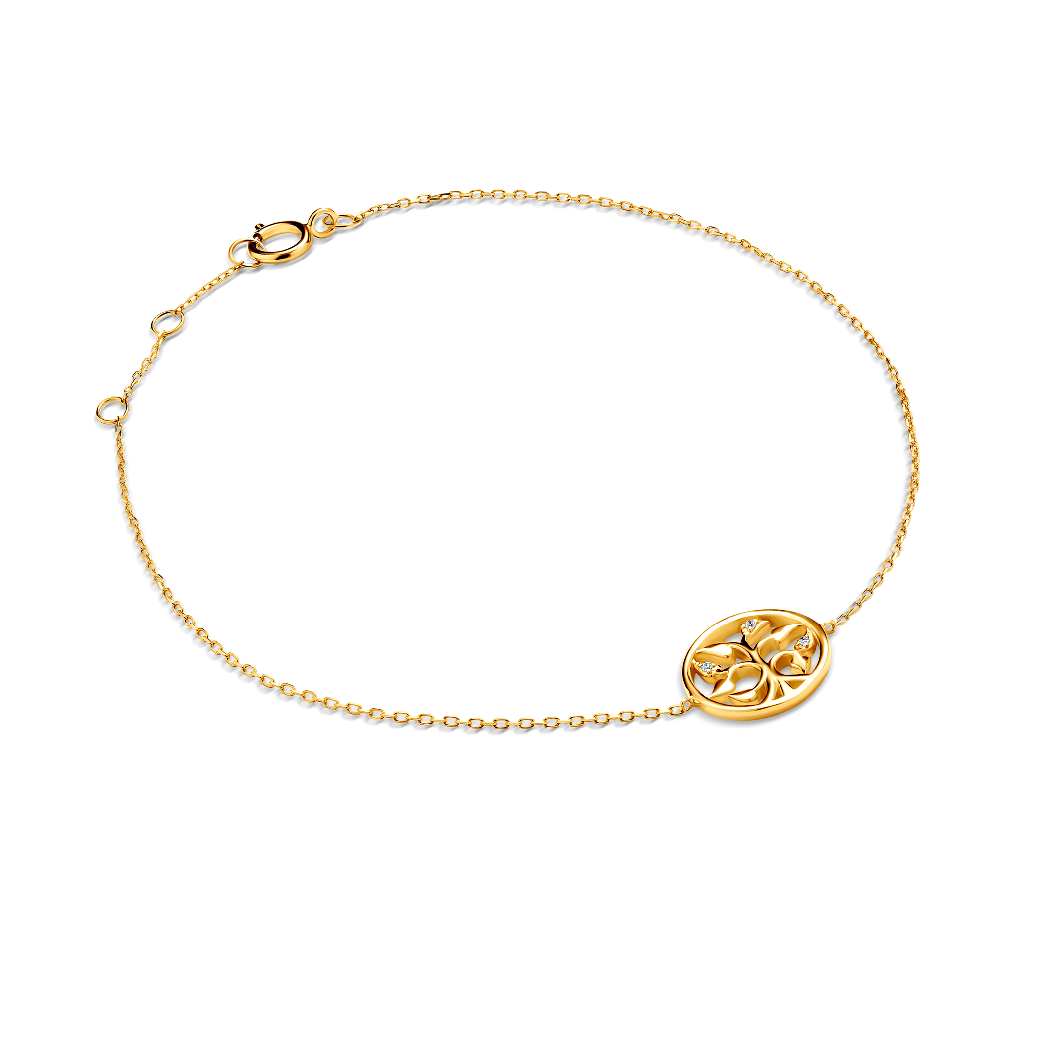 Bransoletka Savicki wykonana z żółtego złota (próba 585). W bransoletce osadzono 3 diamenty o łącznej masie 0,01 CT i szlifie brylantowym.