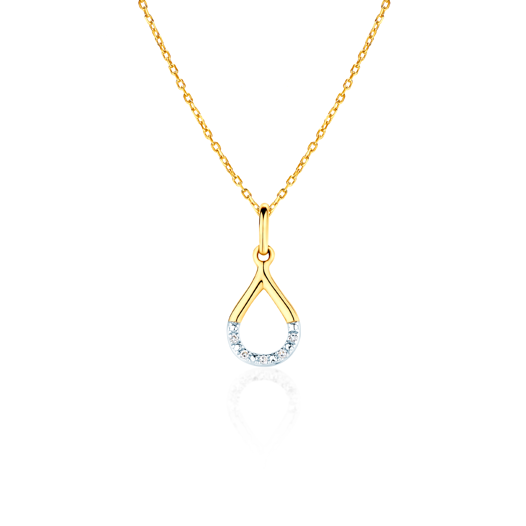 W naszyjniku zostało osadzone 5 diamentów o łącznej masie 0,01 ct. Naszyjnik wykonany z żółtego złota (próba 585).