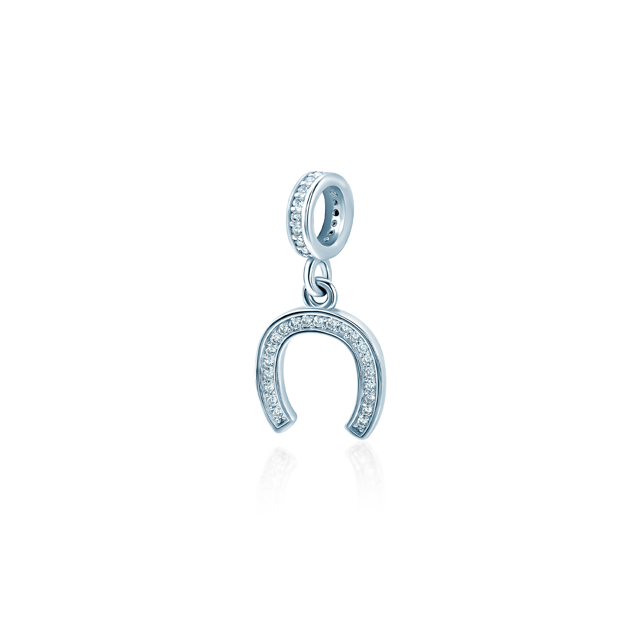 Zawieszka podkowa Savick wykonana ze srebra próby 925. W zawieszce zostały osadzone cyrkonie.