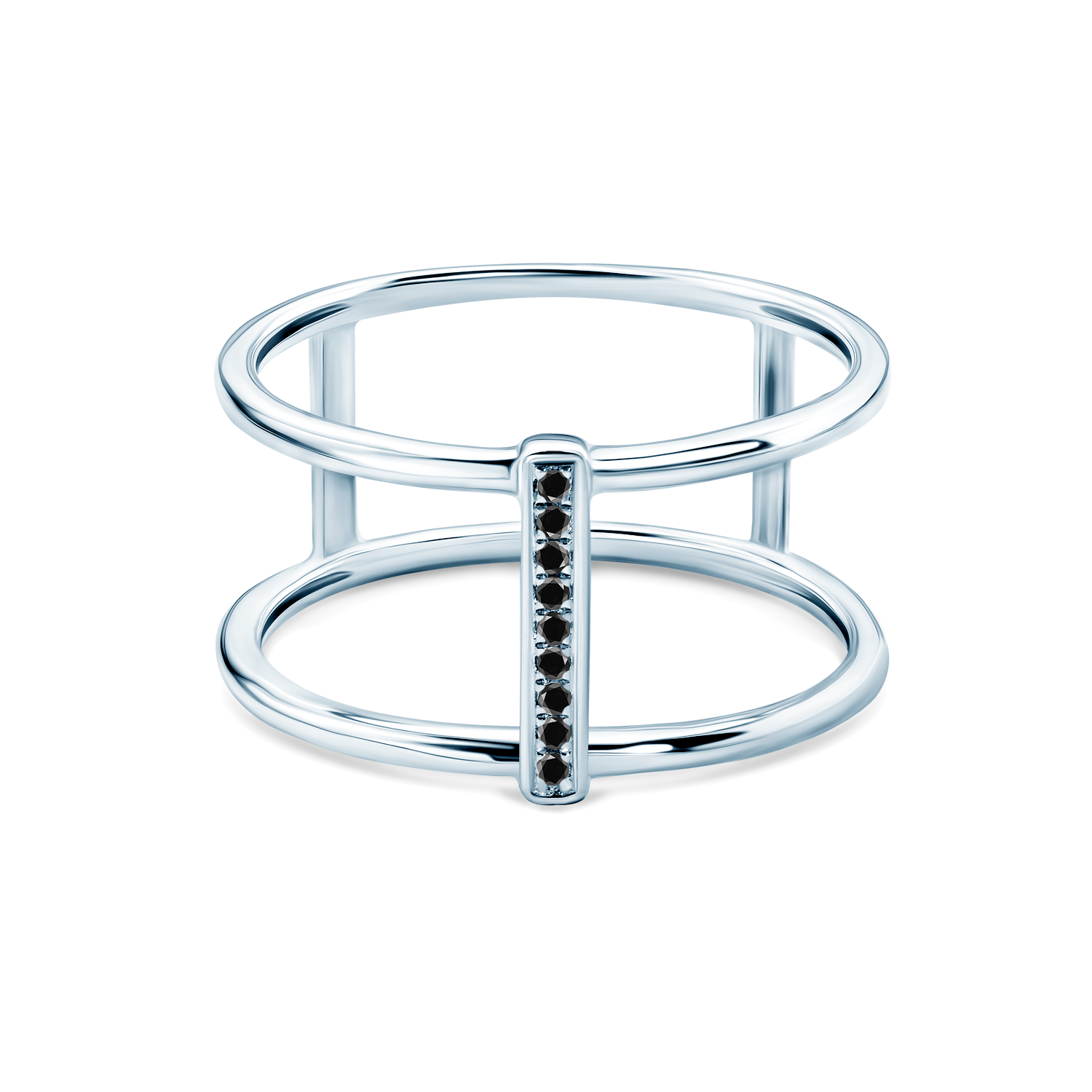 Pierścionek z 9 czarnymi diamentami o łącznej masie 0,03 ct, szlifie brylantowym, wykonany z połączenia 14-karatowego białego złota (próba 585).