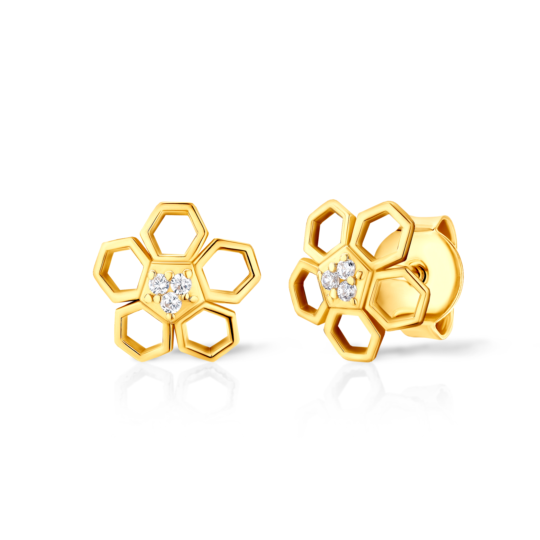Kolczyki plaster miodu Savicki wykonane z żółtego złota (próba 585). W kolczykach zostały osadzone cyrkonie.