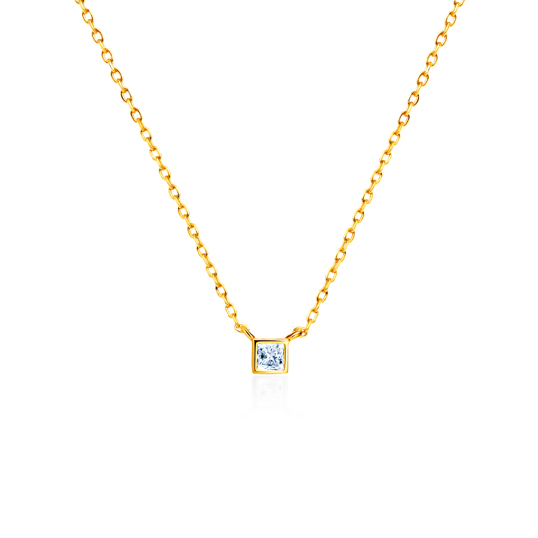 Naszyjnik kwadrat Savicki wykonany ze srebra (próba 925) pozłocony żółtym złotem. W naszyjniku została osadzona cyrkonia.