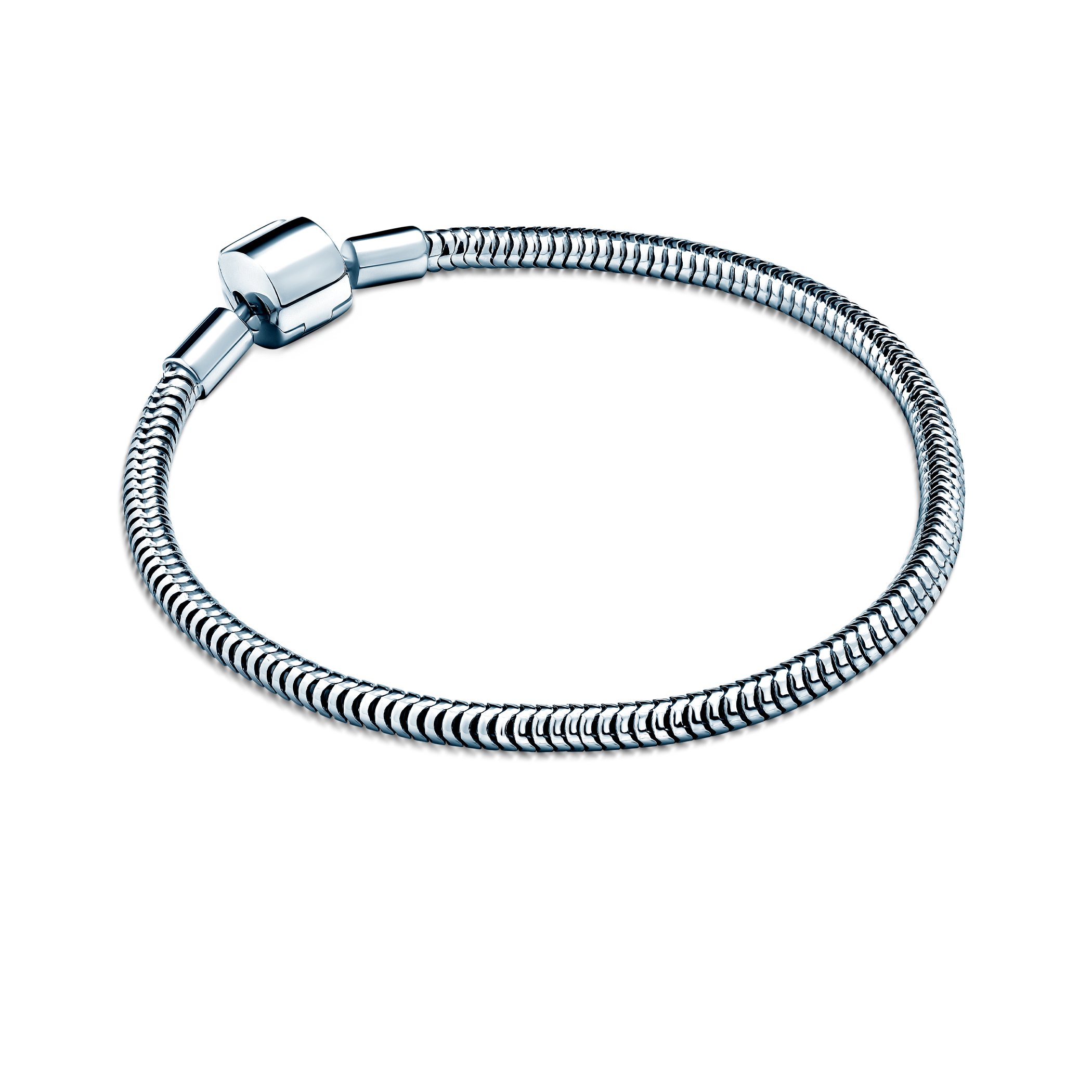 Bransoletka wykonana ze srebra (próba 925). Długość bransoletki: 18cm, grubość: 3mm, szerokość zapięcia: 85mm. Bransoletka prezentuje się efektownie i stylowo zarówno z charmsami jak i bez nich.