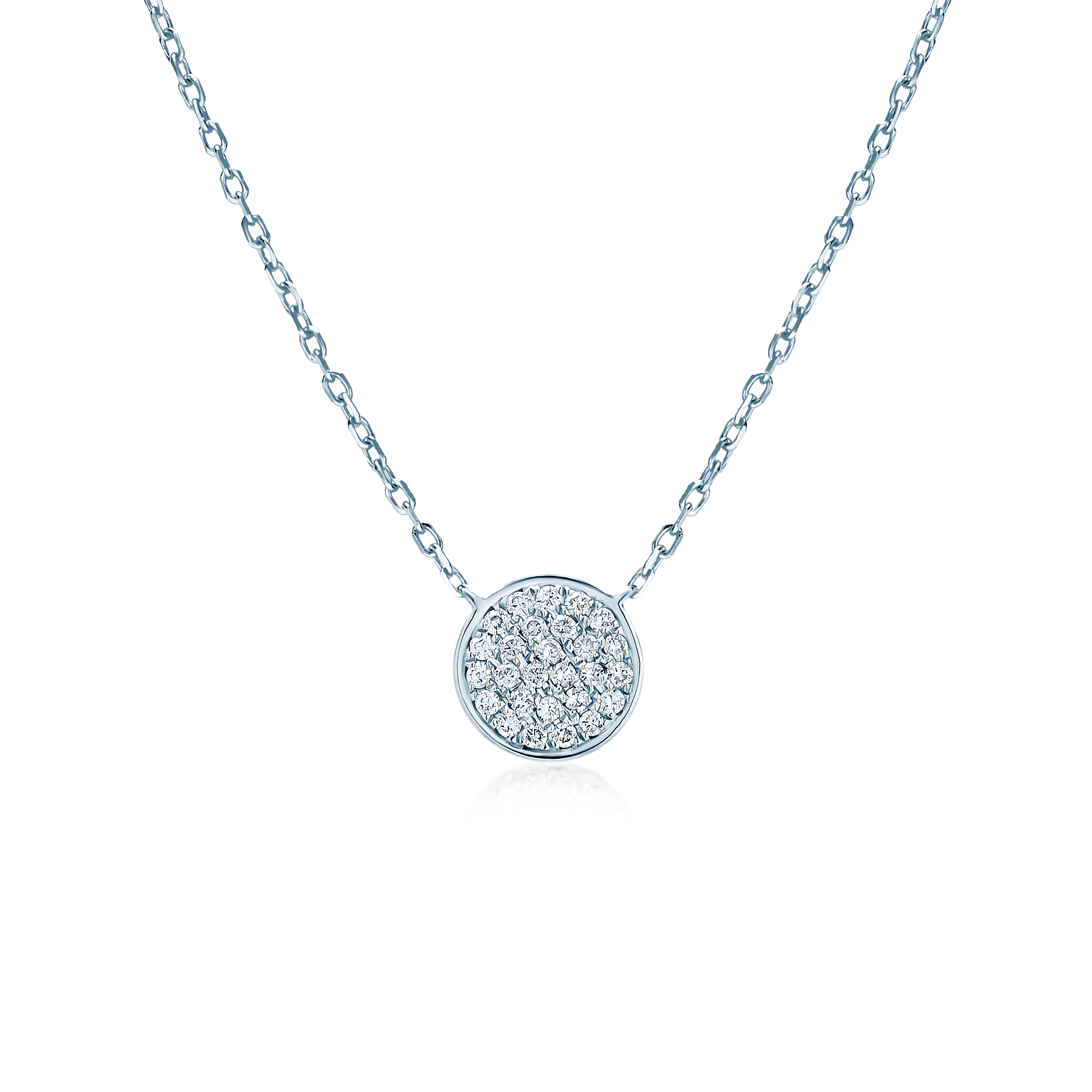 Naszyjnik koło Savicki wykonany z białego złota (próba 375). W naszyjniku zostało osadzonych 27 diamentów o łącznej masie 0,06 ct.