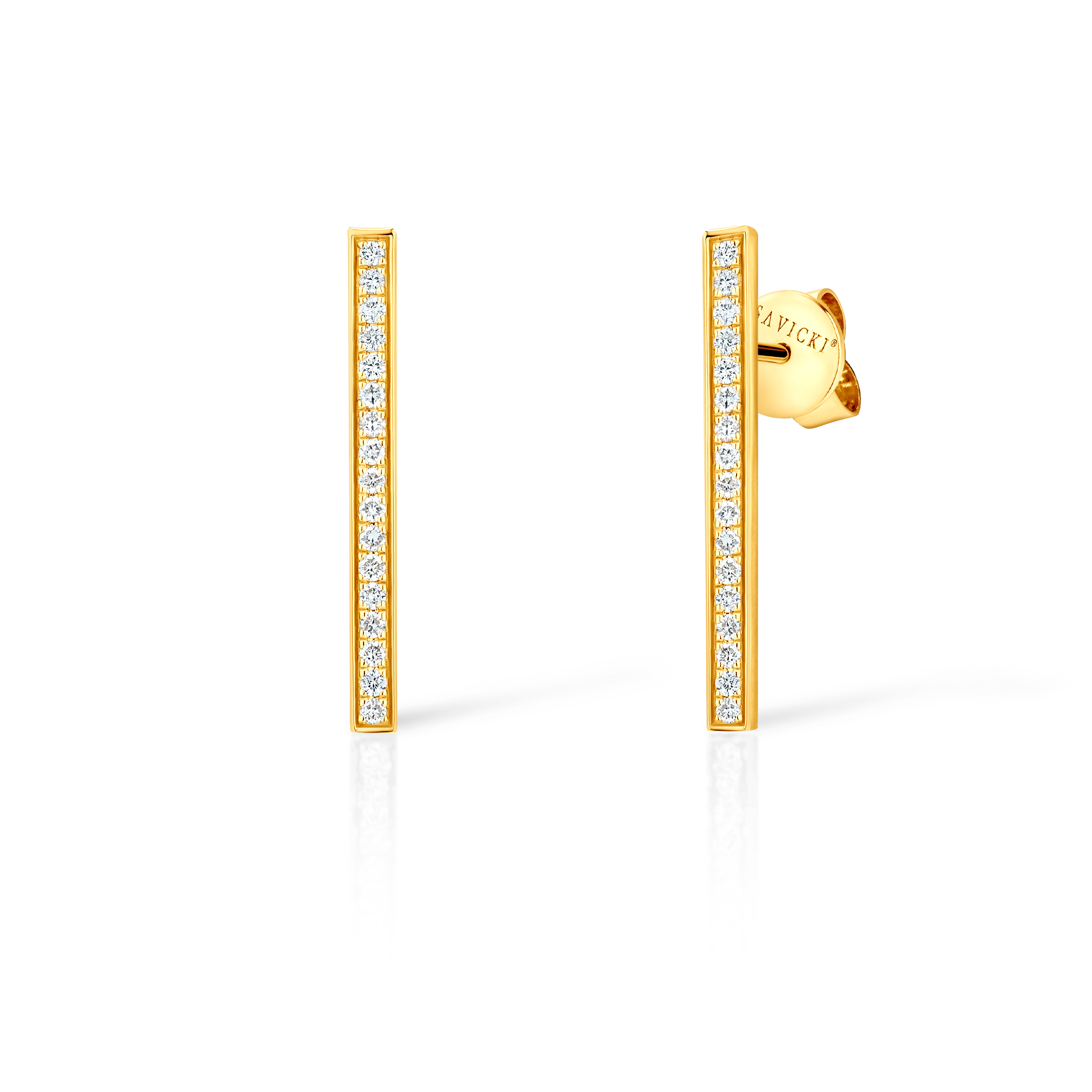Kolczyki Savicki wykonane z żółtego złota (próba 375). W kolczykach zostały osadzone 34 diamenty o łącznej masie 0,26 ct. Kolczyki posiadają blokadę, która zabezpiecza zapięcie przed zsunięciem się.