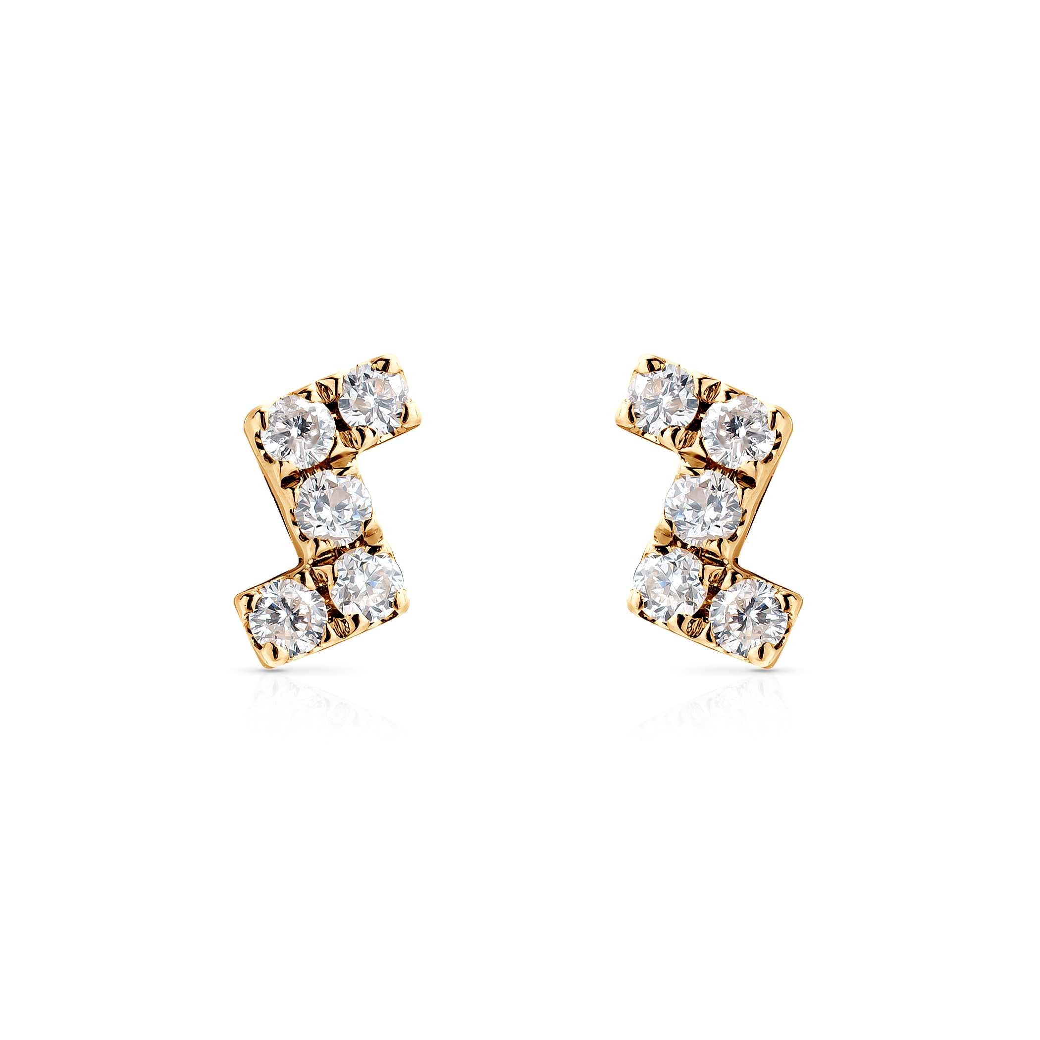 Kolczyki Savicki wykonane z żółtego złota (próba 375). W kolczykach zostało osadzonych 10 diamentów o łącznej masie 0,11 ct. Kolczyki posiadają blokadę, która zabezpiecza zapięcie przed zsunięciem się.