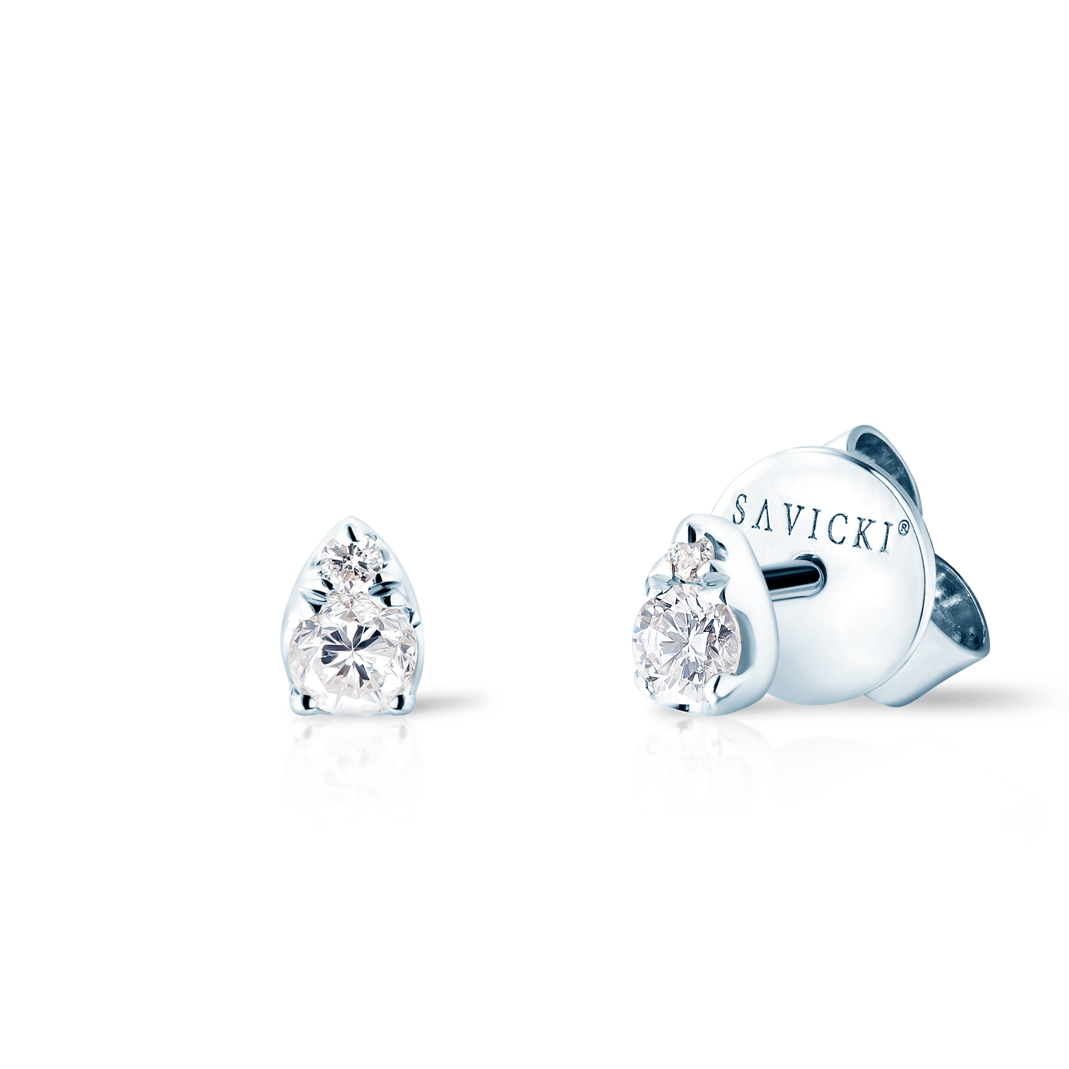Kolczyki łezki Savicki wykonane z białego złota (próba 375). W kolczykach zostały osadzone 4 diamenty o łącznej masie 0,06 ct. Kolczyki posiadają blokadę, która zabezpiecza zapięcie przed zsunięciem się.