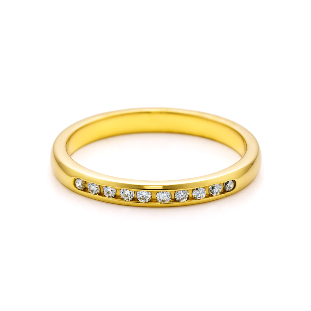 Pierścionek z diamentami o łącznej masie 0,12 ct, o szlifie brylantowym wysokiej czystości SI/H. Wykonany z 14-karatowego żółtego złota (próba 0,585).