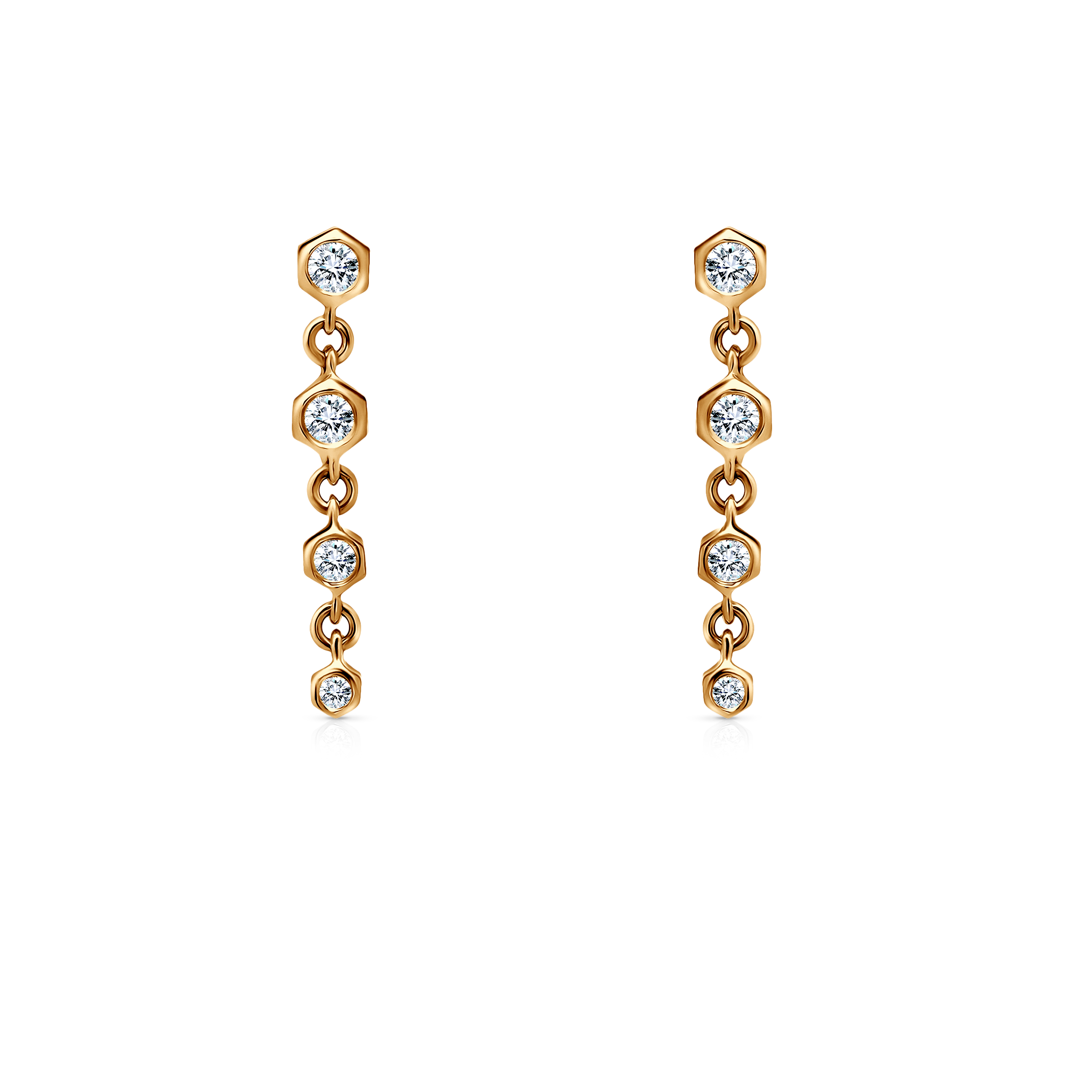 Kolczyki wykonane z żółtego złota (próba 375). W kolczykach zostało osadzonych 8 diamentów o łącznej masie 0,11 ct. Kolczyki posiadają blokadę, która zabezpiecza zapięcie przed zsunięciem się.