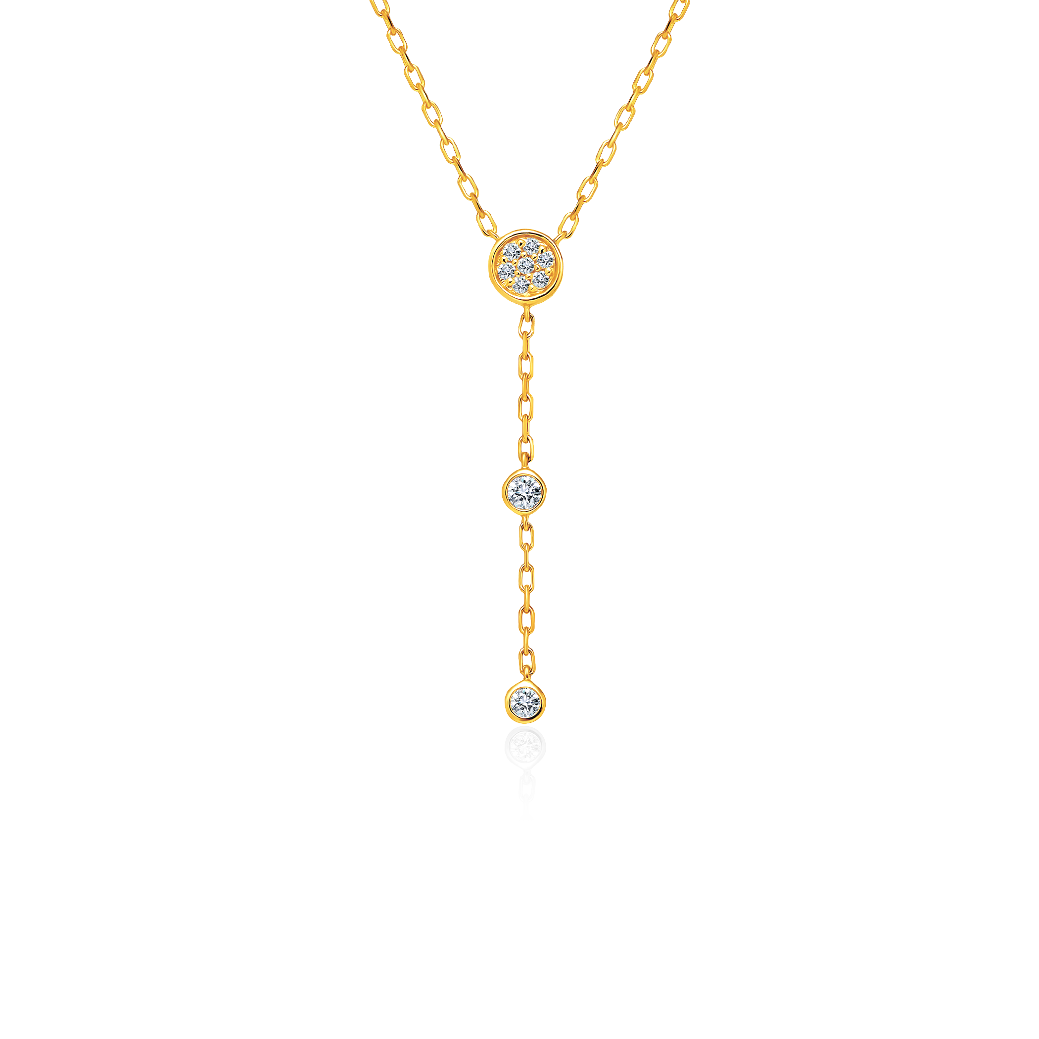 Naszyjnik wykonany z żółtego złota (próba 375). W naszyjniku zostało osadzonych 9 diamentów o łącznej masie 0,08 ct.