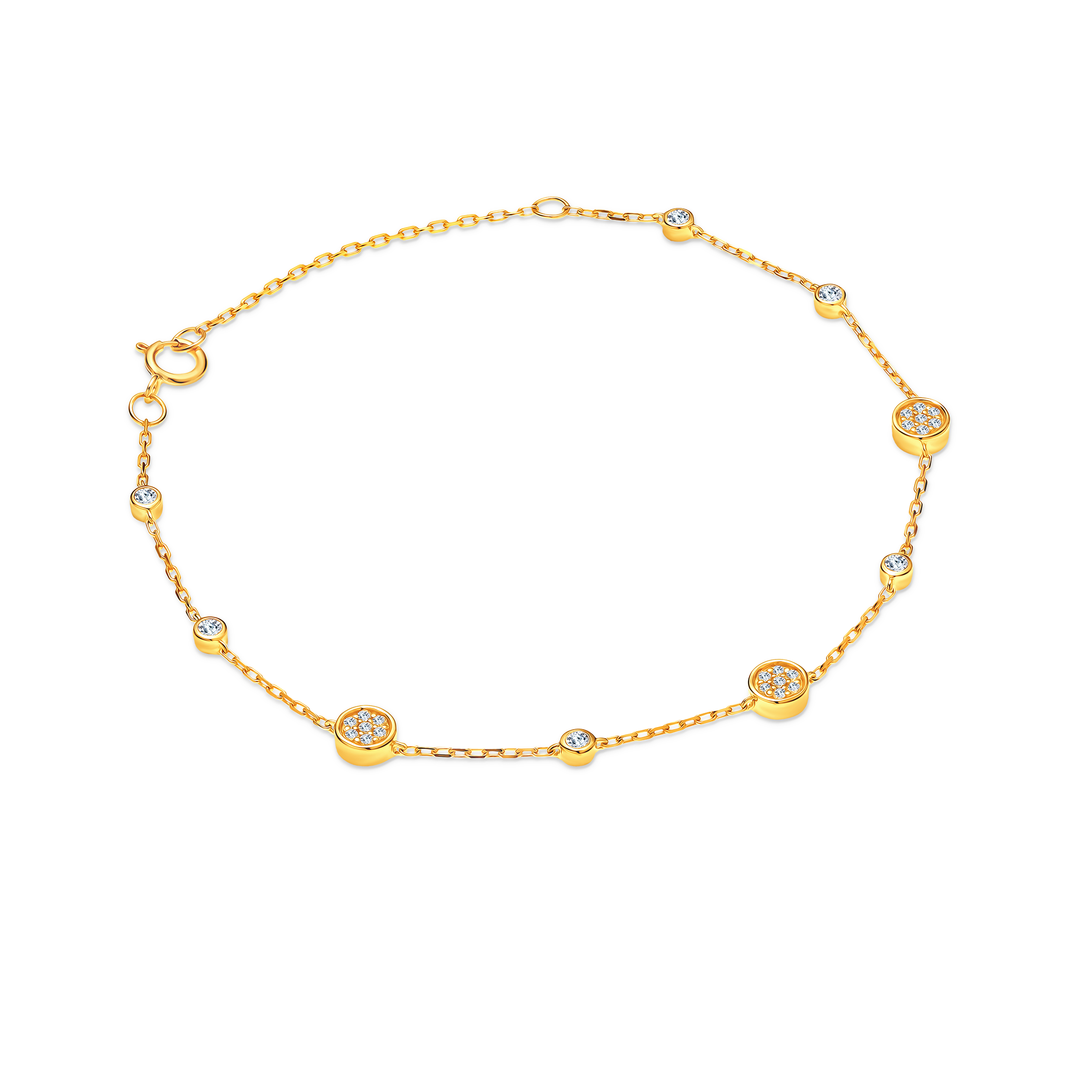 Bransoletka wykonana z żółtego złota (próba 375). W bransoletce zostało osadzonych 27 diamentów o łącznej masie 0,21 ct.