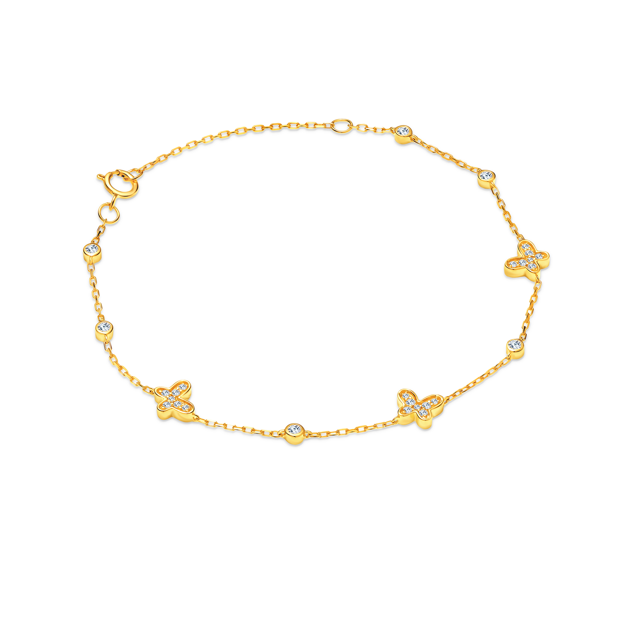 Bransoletka motyl wykonana z żółtego złota (próba 375). W bransoletce zostało osadzonych 27 diamentów o łącznej masie 0,22 ct.