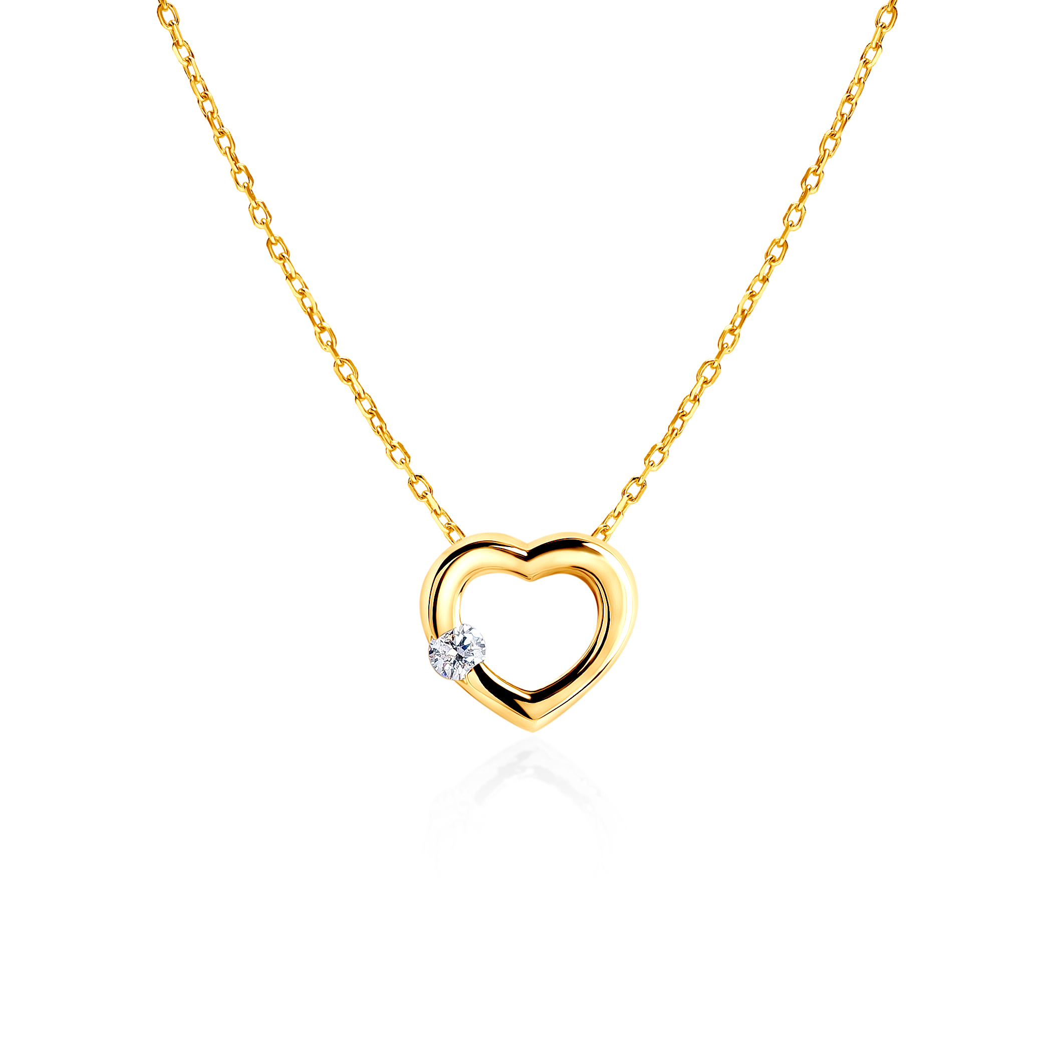 Naszyjnik serce Savicki wykonany z żółtego złota (próba 585). W naszyjniku został osadzony 1 diament o masie 0,04 ct.