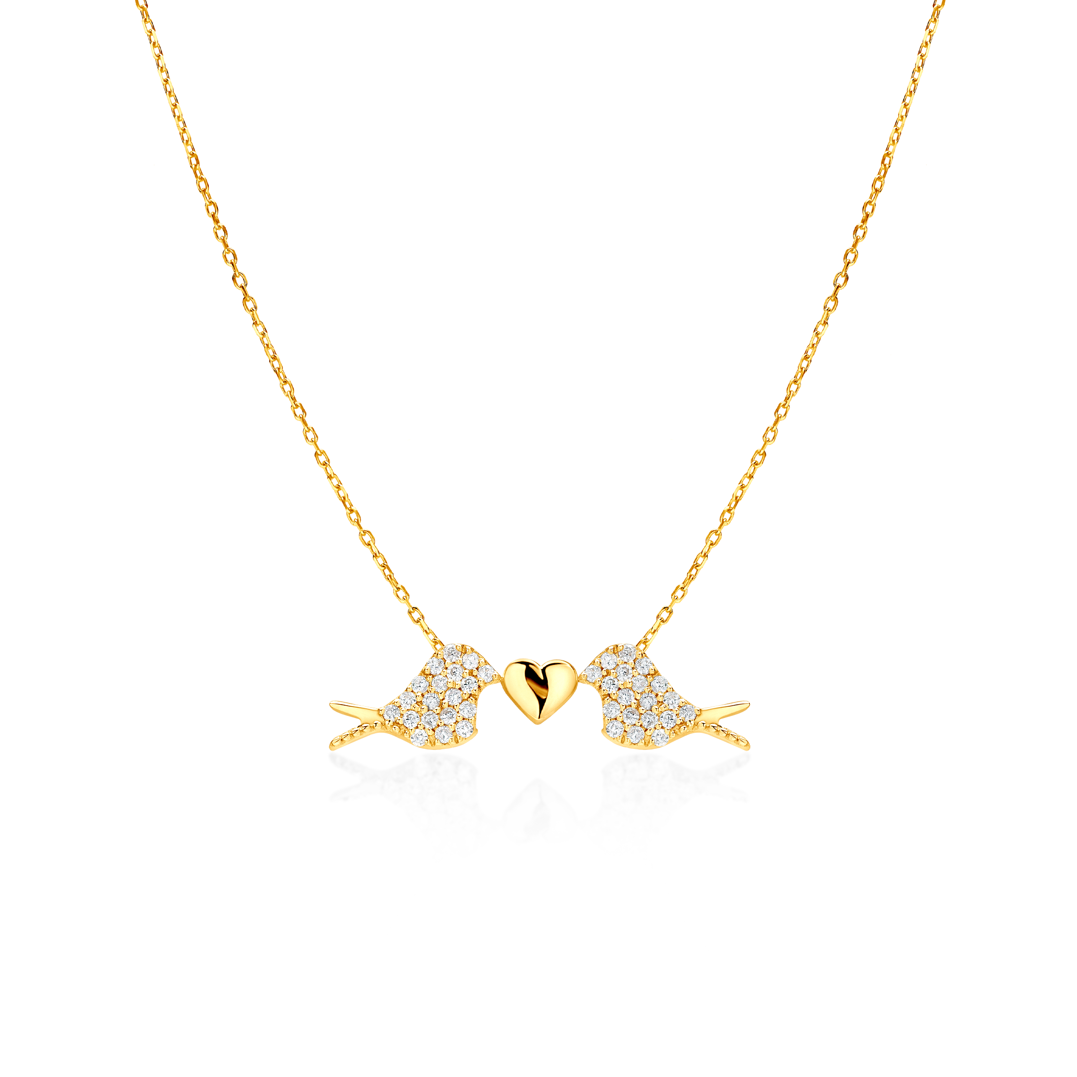 Naszyjnik ptaki, serce Savicki wykonany z żółtego złota (próba 585). W naszyjniku zostało osadzonych 38 diamentów o łącznej masie 0,19 ct.
