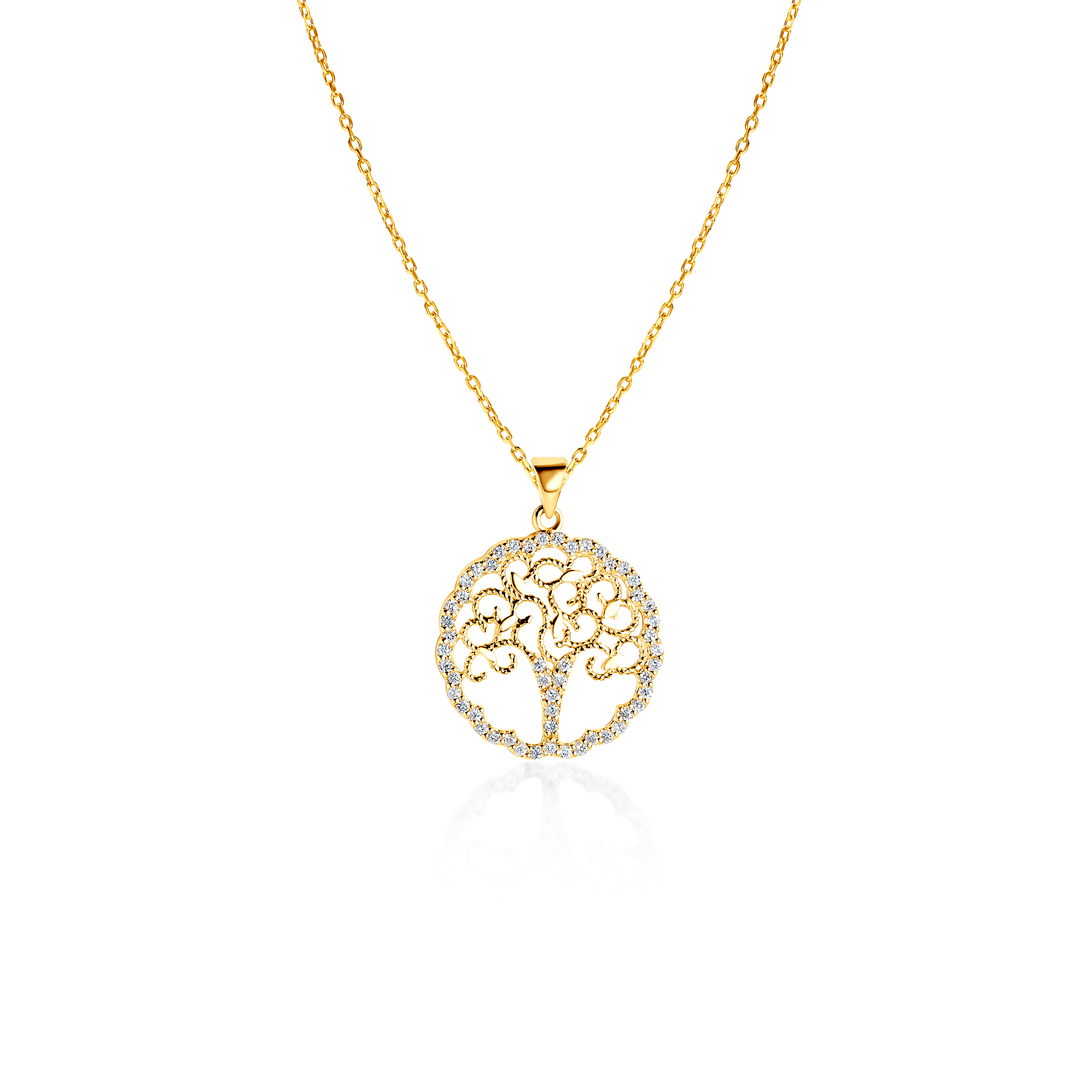 Naszyjnik drzewo życia Savicki wykonany z żółtego złota (próba 585). W naszyjniku zostały osadzone 52 diamenty o łącznej masie 0,26 ct.