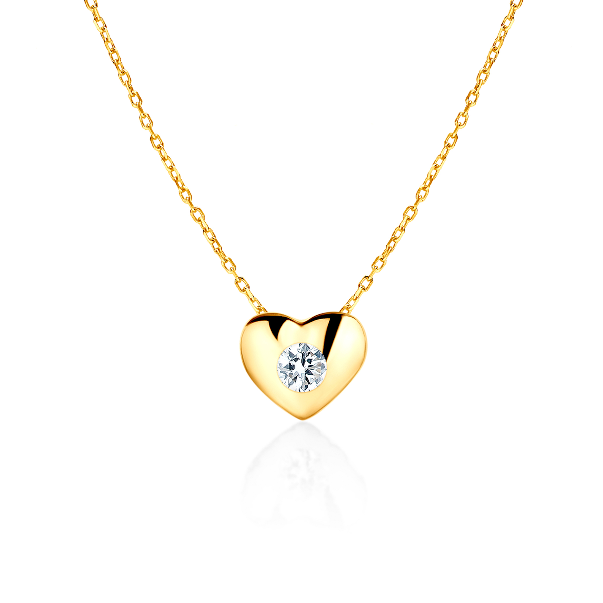 Naszyjnik serce Savicki wykonany z żółtego złota (próba 585). W naszyjniku został osadzony 1 diament o masie 0,11 ct.