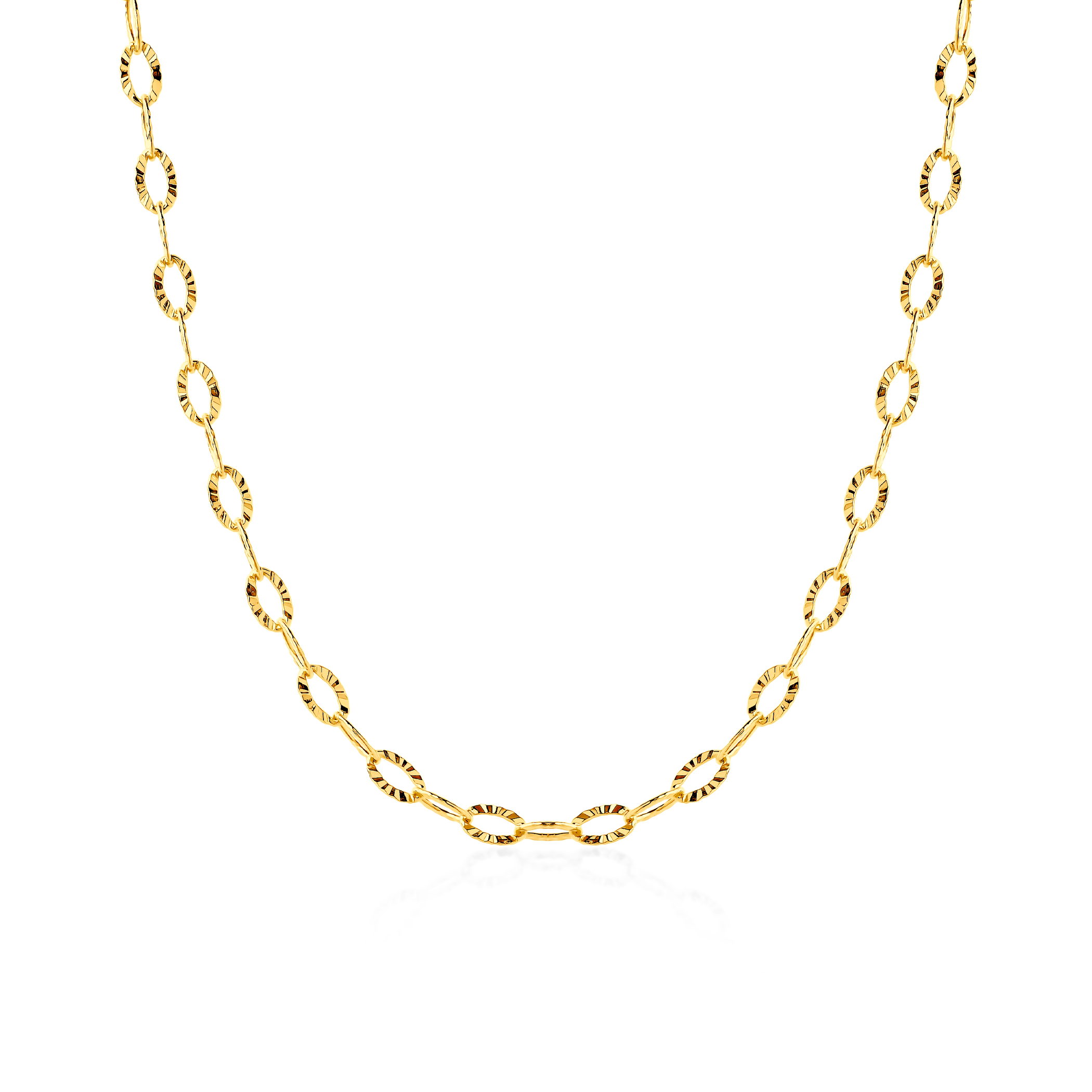 Łańcuszek Savicki wykonany ze srebra (próba 925) pozłacany żółtym złotem.