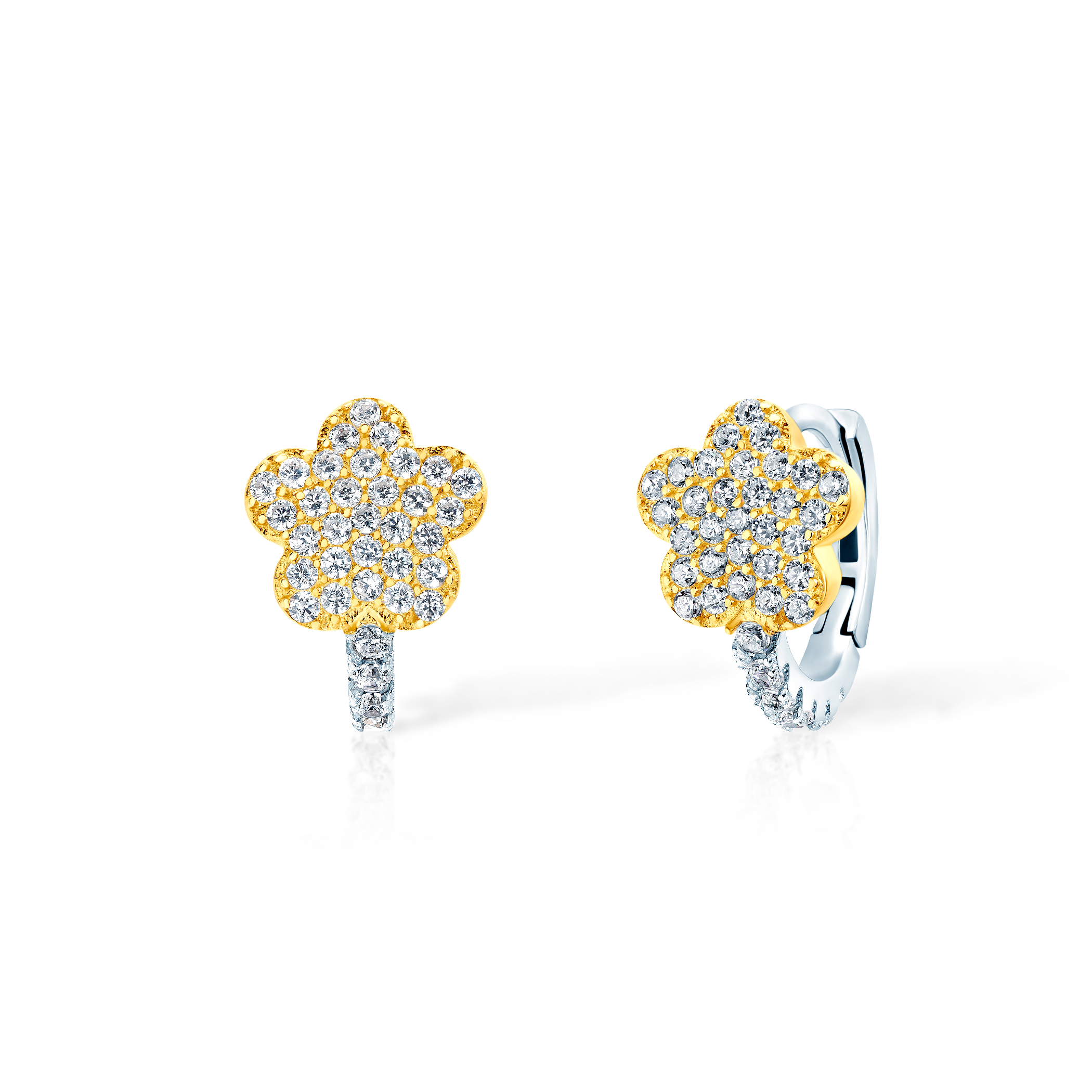 Kolczyki koła, kwiatki Savicki wykonane ze srebra, pozłacane żółtym złotem. W kolczykach zostały osadzone cyrkonie.