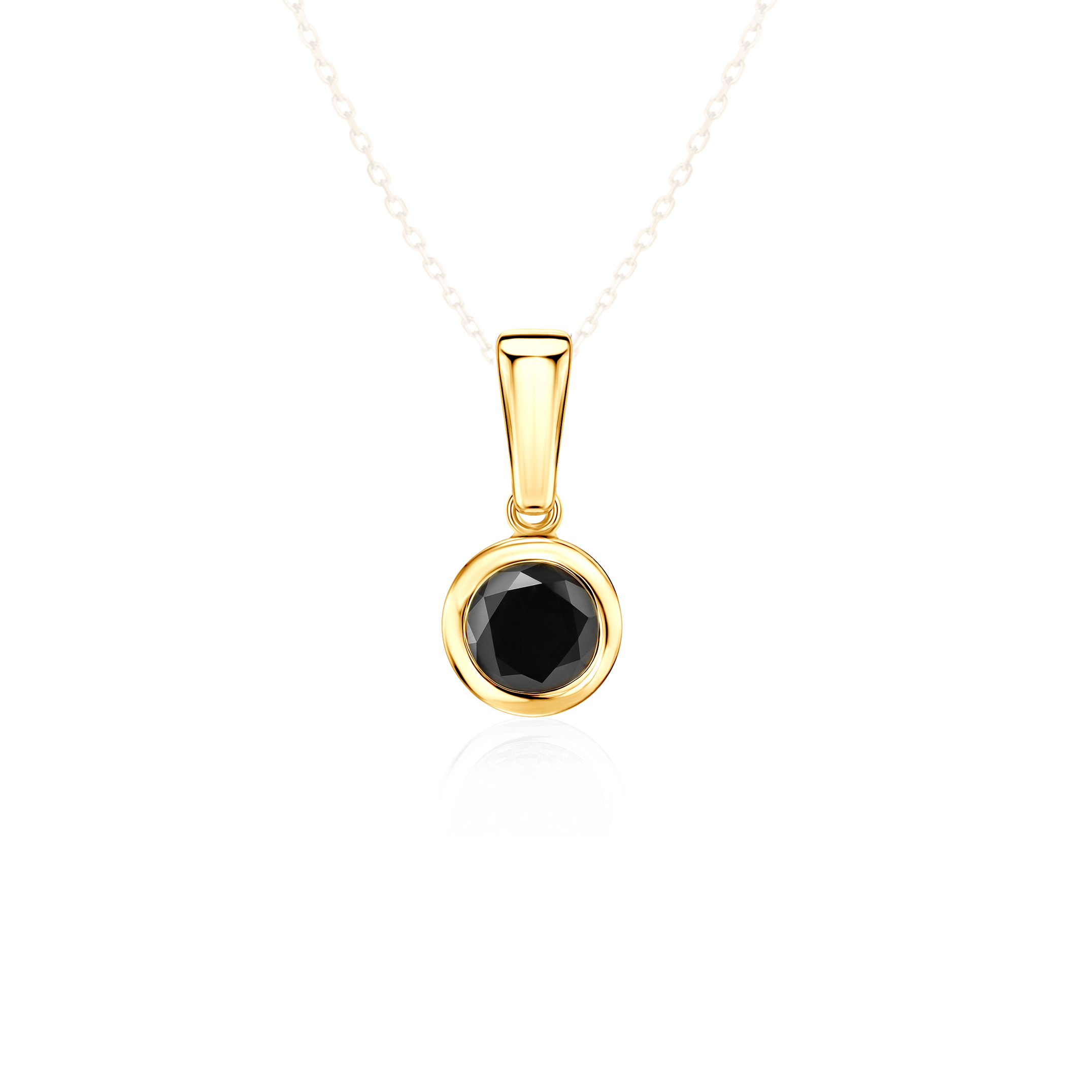 Zawieszka wykonana z żółtego złota (próba 585). W zawieszce został osadzony czarny diament o masie 1 ct i szlifie brylantowym.