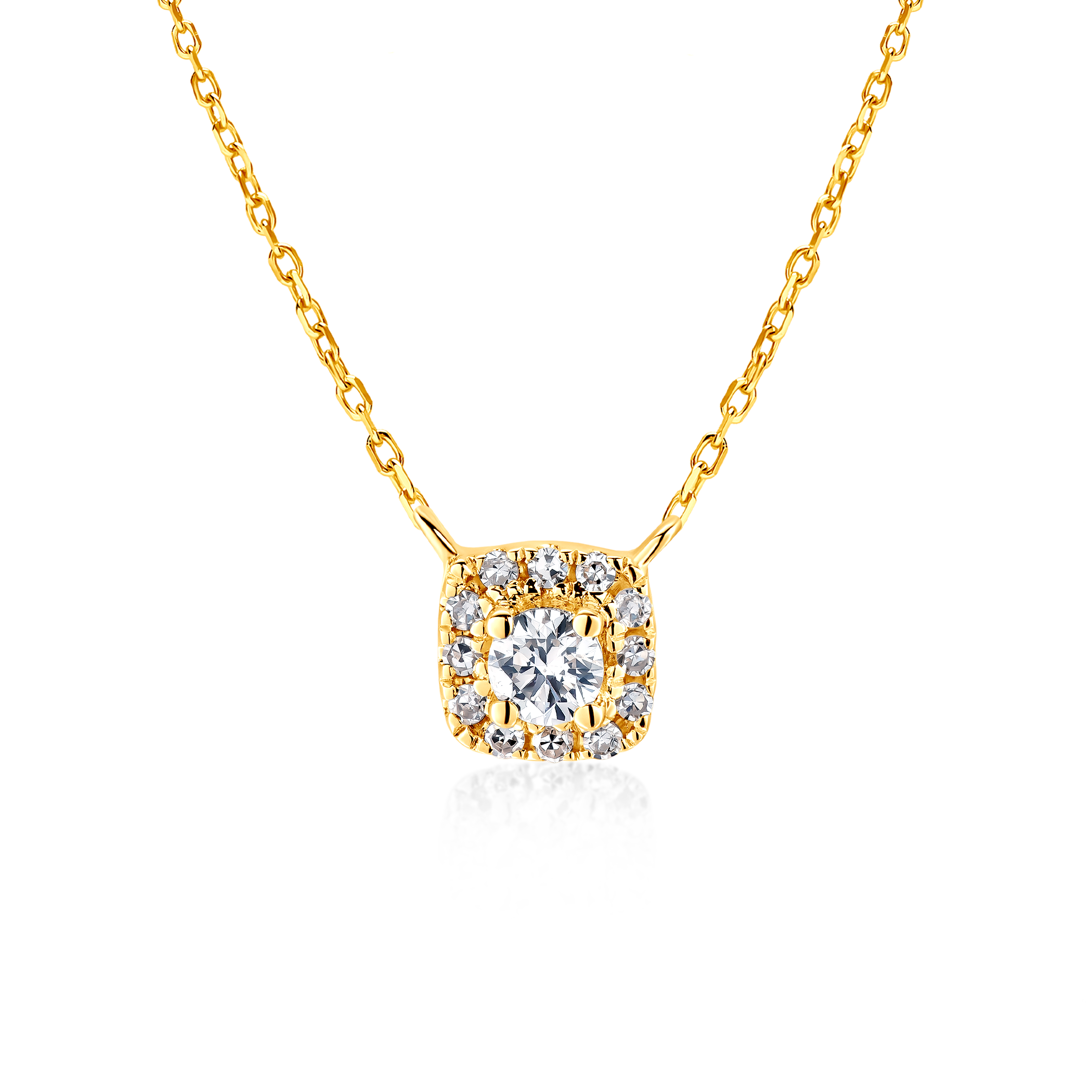 Naszyjnik Savicki wykonany z żółtego złota (próba 585). W naszyjniku zostało osadzonych 13 diamentów o szlifie single cut o łącznej masie 0,07 ct.