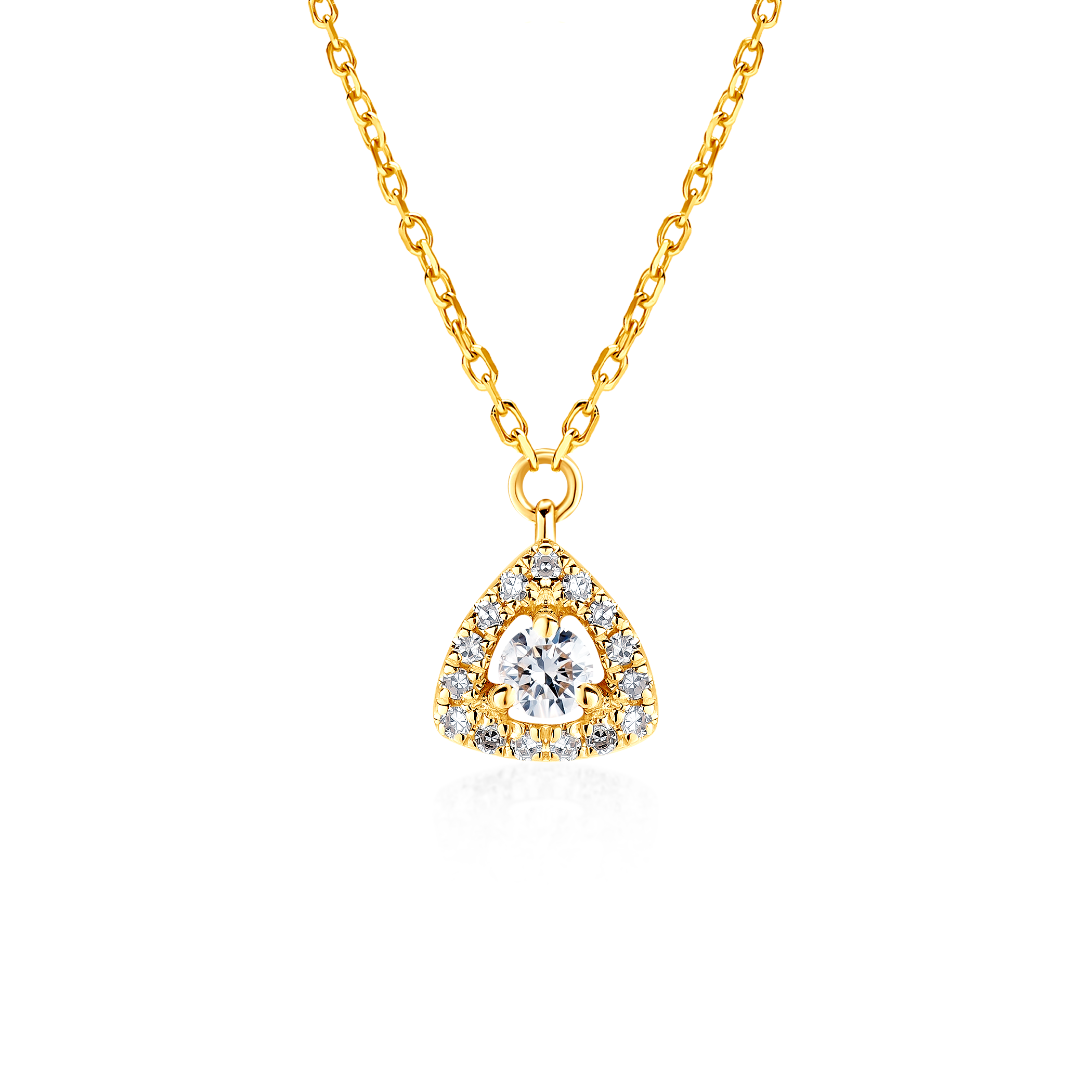 Naszyjnik Savicki wykonany z żółtego złota (próba 585). W naszyjniku zostało osadzonych 16 diamentów o szlifie single cut o łącznej masie 0,08 ct.