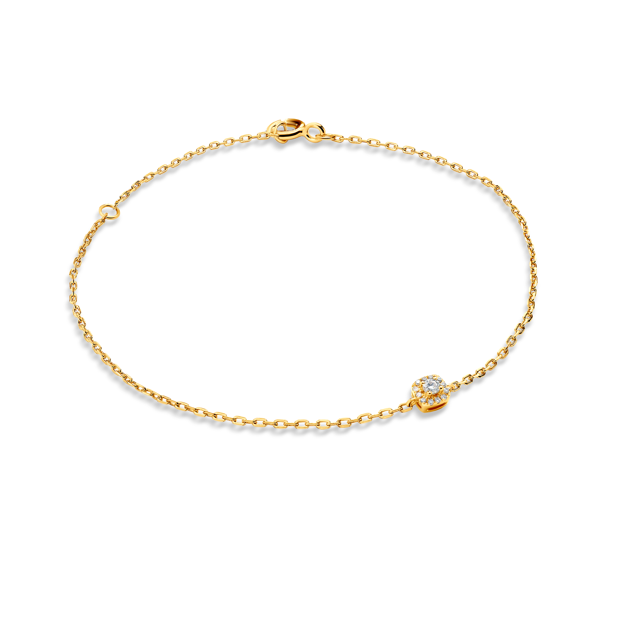 Bransoletka Savicki wykonana z żółtego złota (próba 585). W bransoletce zostało osadzonych 13 diamentów o szlifie single cut o łącznej masie 0,07 ct.