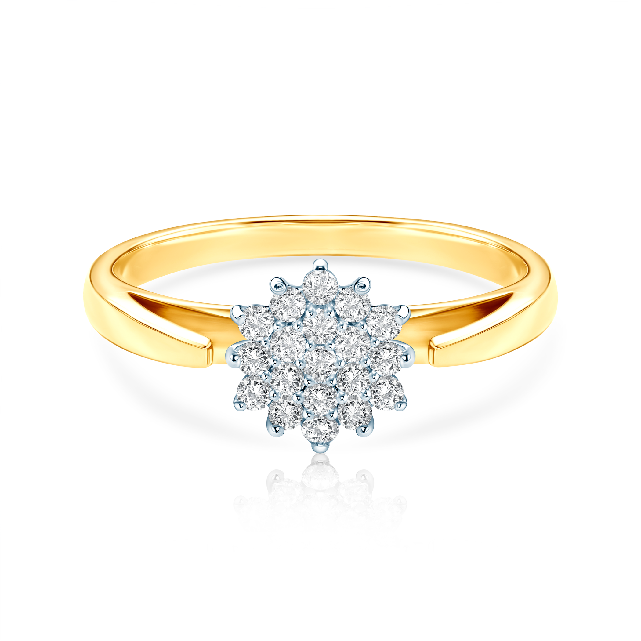 Pierścionek z diamentami o szlifie brylantowym wysokiej czystości SI/H, o łącznej masie 0,18 ct. Wykonany z połączenia 14-karatowego żółtego oraz białego złota (próba 0,585).