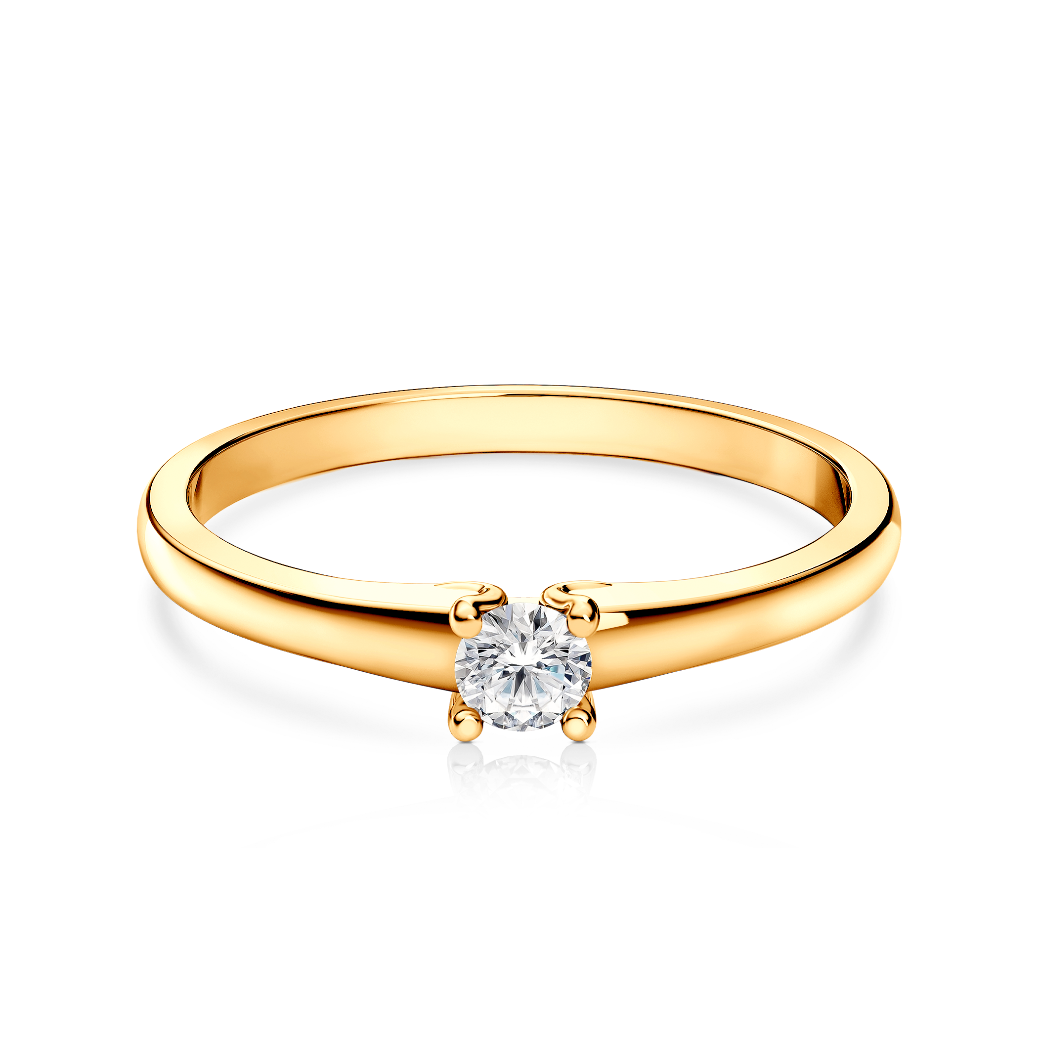 Pierścionek zaręczynowy z centralnie umieszczonym diamentem 0,08 ct o wysokiej jakości szlifie brylantowym i czystości SI2/H. Wszystkie diamenty SAVICKI objęte są wieczystą gwarancją oraz posiadają oryginalny certyfikat jakości. Pierścionek z diamentem został wykonany z 14-karatowego żółtego złota (próba 585).