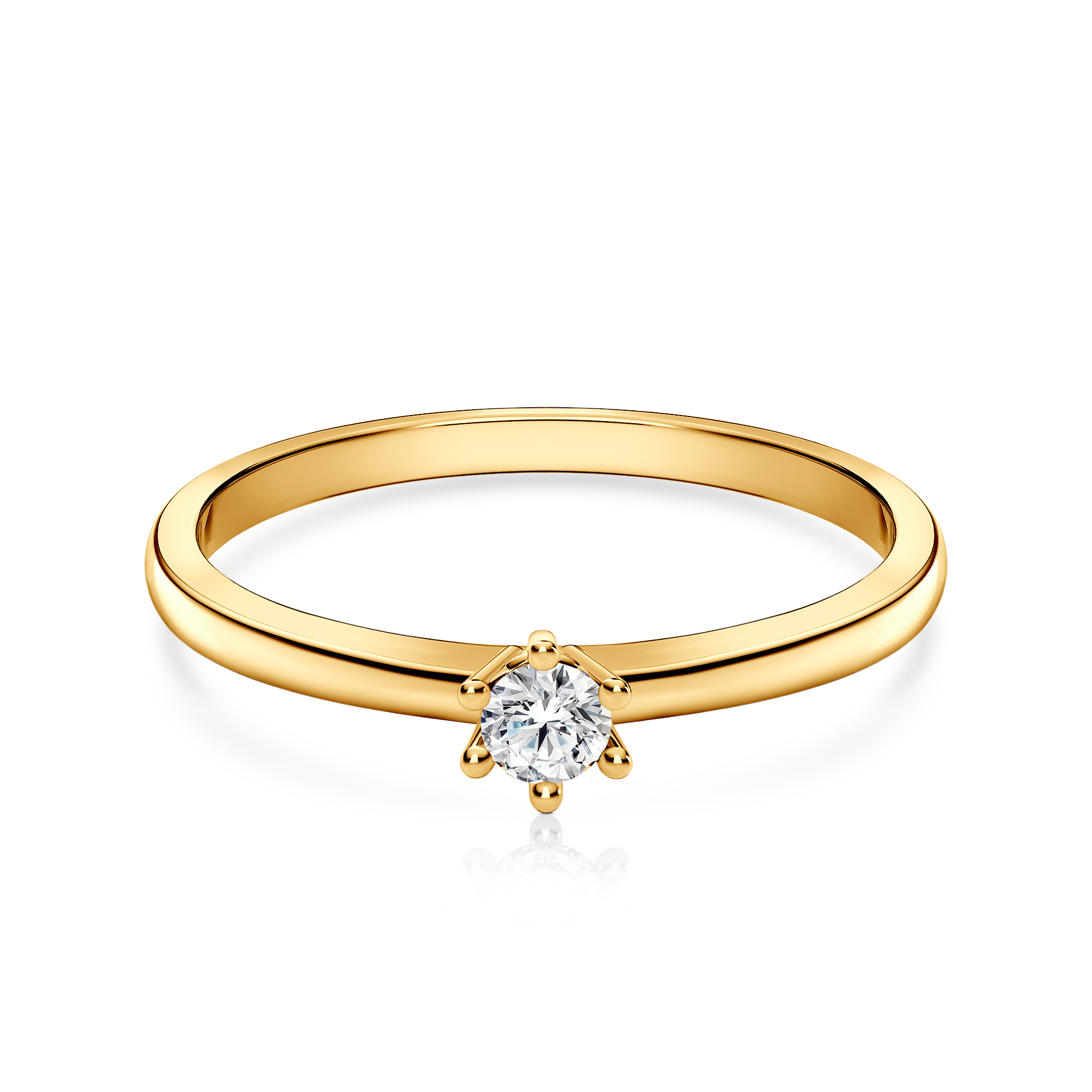 Pierścionek zaręczynowy z centralnie umieszczonym diamentem 0,05 ct o wysokiej jakości szlifie brylantowym i czystości SI2/H. Wszystkie diamenty SAVICKI objęte są wieczystą gwarancją oraz posiadają oryginalny certyfikat jakości. Pierścionek z diamentem został wykonany z 14-karatowego żółtego złota (próba 585).