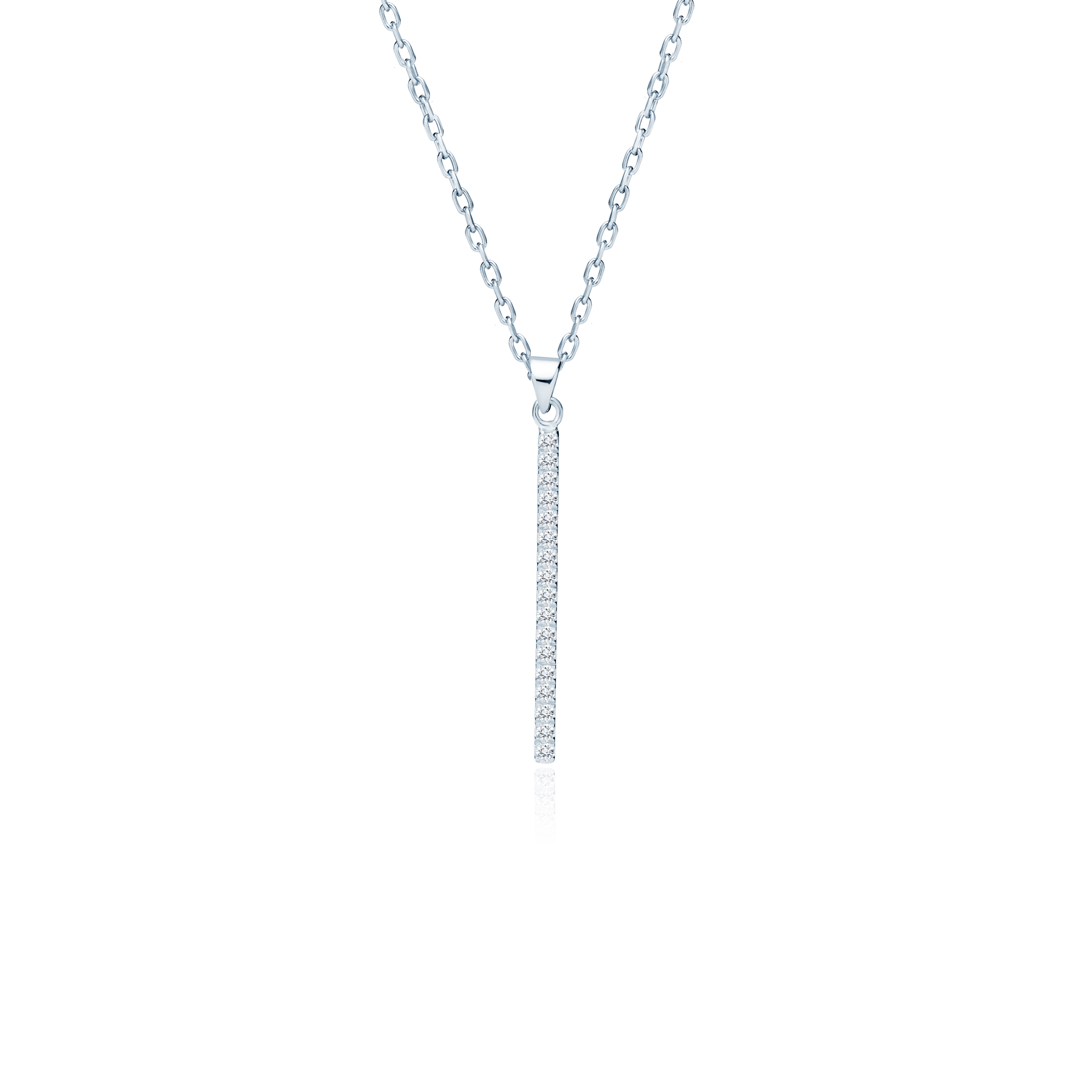 Naszyjnik prostokąt Savicki wykonany z żółtego złota (próba 585). W naszyjniku zostało osadzonych 17 diamentów o łącznej masie 0,14 ct.