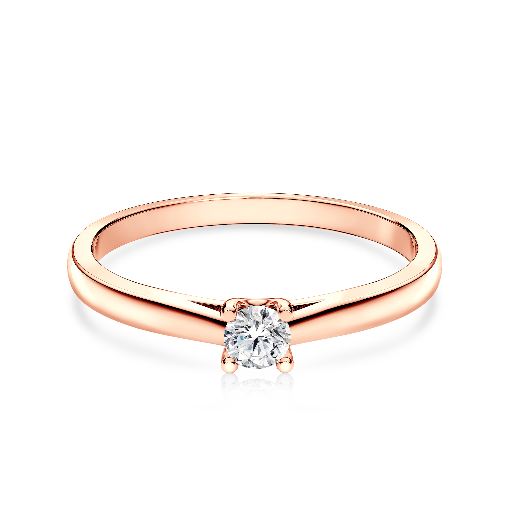 Pierścionek zaręczynowy z centralnie umieszczonym diamentem 0,05 ct o wysokiej jakości szlifie brylantowym i czystości SI2/H. Wszystkie diamenty SAVICKI objęte są wieczystą gwarancją oraz posiadają oryginalny certyfikat jakości. Pierścionek z diamentem został wykonany z 14-karatowego różowego złota (próba 585).