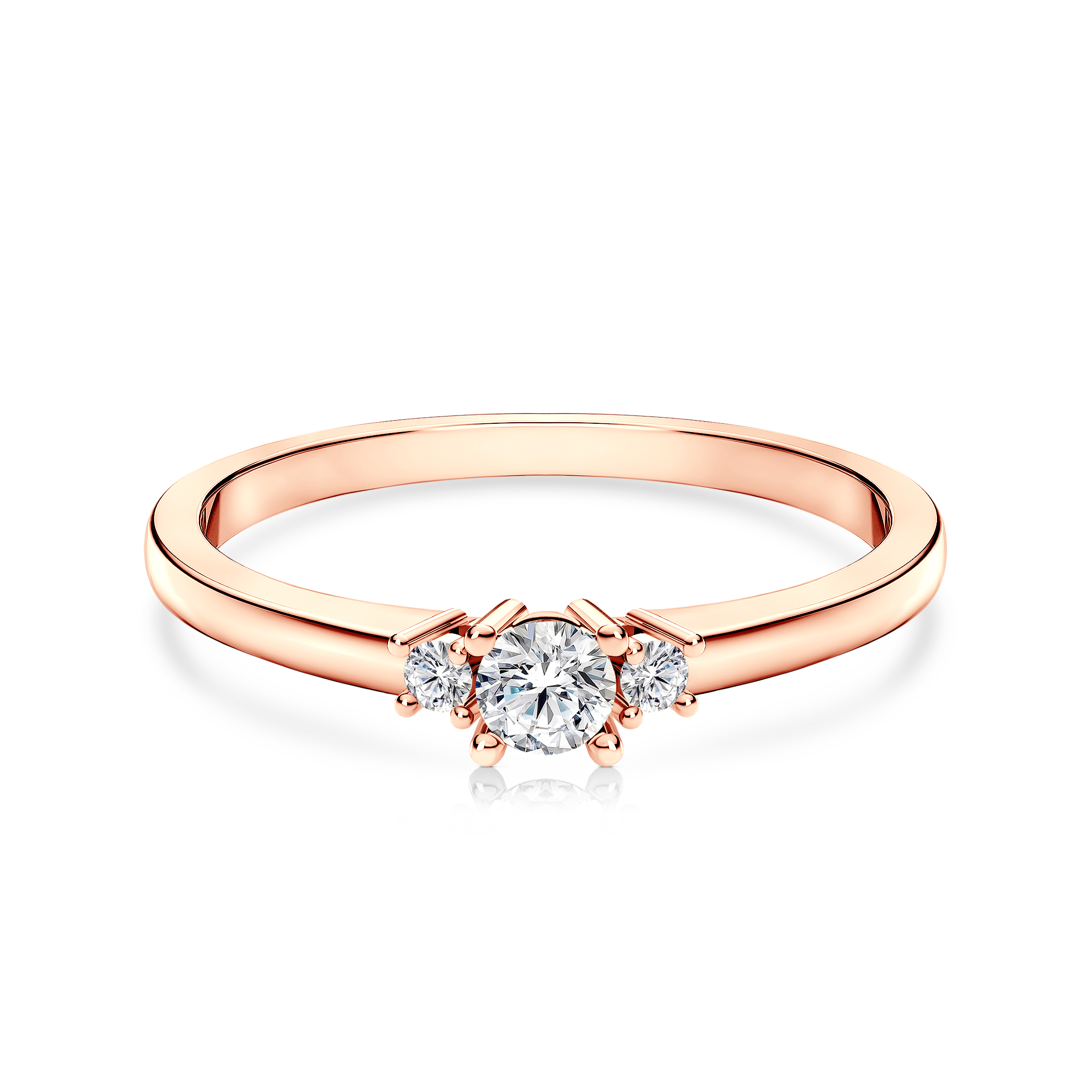 Pierścionek zaręczynowy z centralnie umieszczonym diamentem 0,05 ct o wysokiej jakości szlifie brylantowym i czystości SI2/H oraz z 2 diamentami o łącznej masie 0,026 ct o szlifie brylantowym i wysokiej czystości SI2/H. Wszystkie diamenty SAVICKI objęte są wieczystą gwarancją oraz posiadają oryginalny certyfikat jakości. Pierścionek z diamentem został wykonany z 14-karatowego różowego złota (próba 585).