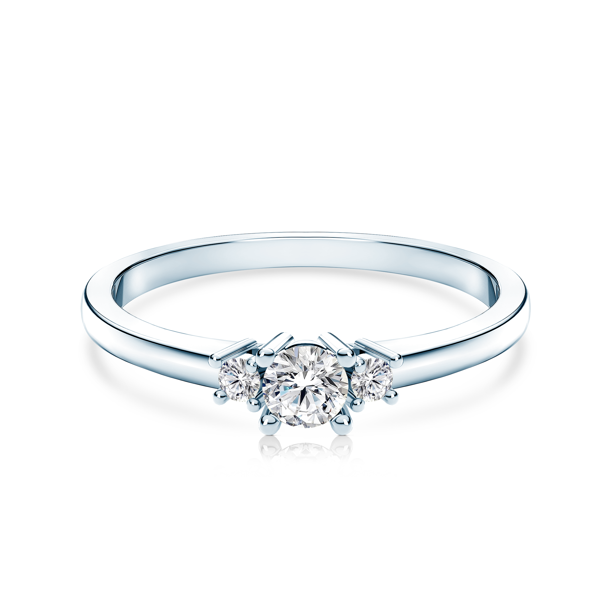 Pierścionek zaręczynowy z centralnie umieszczonym diamentem 0,08 ct o wysokiej jakości szlifie brylantowym i czystości SI2/H oraz z 2 diamentami o łącznej masie 0,027 ct o wysokiej jakości szlifie brylantowym i czystości SI2/H. Wszystkie diamenty SAVICKI objęte są wieczystą gwarancją oraz posiadają oryginalny certyfikat jakości. Pierścionek z diamentem został wykonany z 14-karatowego białego złota (próba 585).