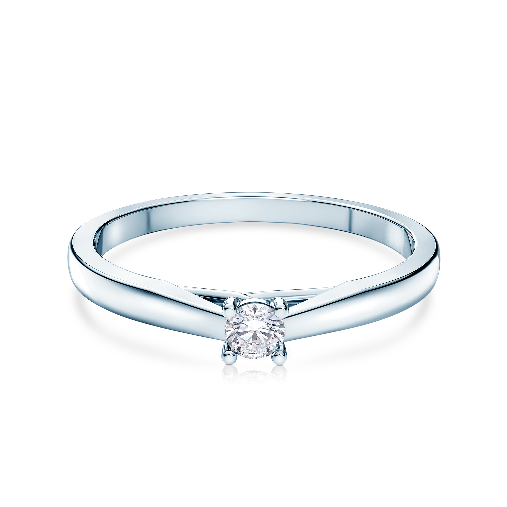 Pierścionek zaręczynowy z centralnie umieszczonym diamentem 0,05 ct o wysokiej jakości szlifie brylantowym i czystości SI2/H. Wszystkie diamenty SAVICKI objęte są wieczystą gwarancją oraz posiadają oryginalny certyfikat jakości. Pierścionek z diamentem został wykonany z 14-karatowego białego złota (próba 585).