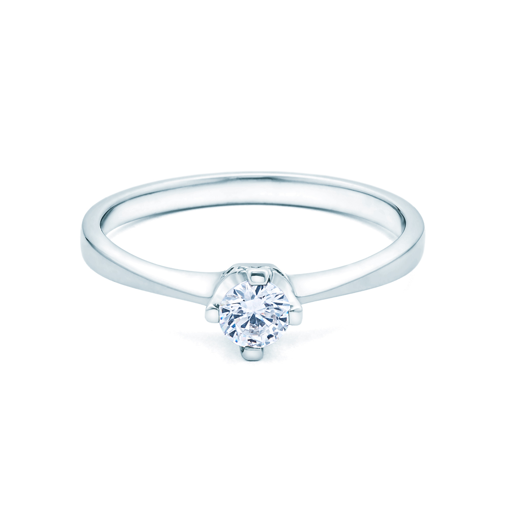 Pierścionek zaręczynowy z diamentem o masie 0,18 ct, o szlifie brylantowym wysokiej czystości SI/H, wykonany z 14-karatowego białego złota (próba 0,585).