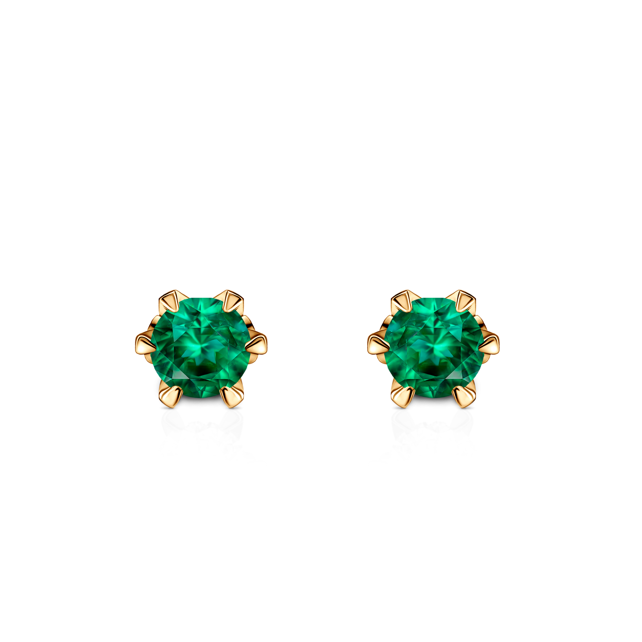 Kolczyki wykonane z 14-karatowego żółtego złota (próba 585). W kolczykach zostały osadzone 2 szmaragdy o szlifie brylantowym o łącznej masie 0,2 ct oraz 4 diamenty o wysokiej czystości SI2/H o łącznej masie 0,02 ct.