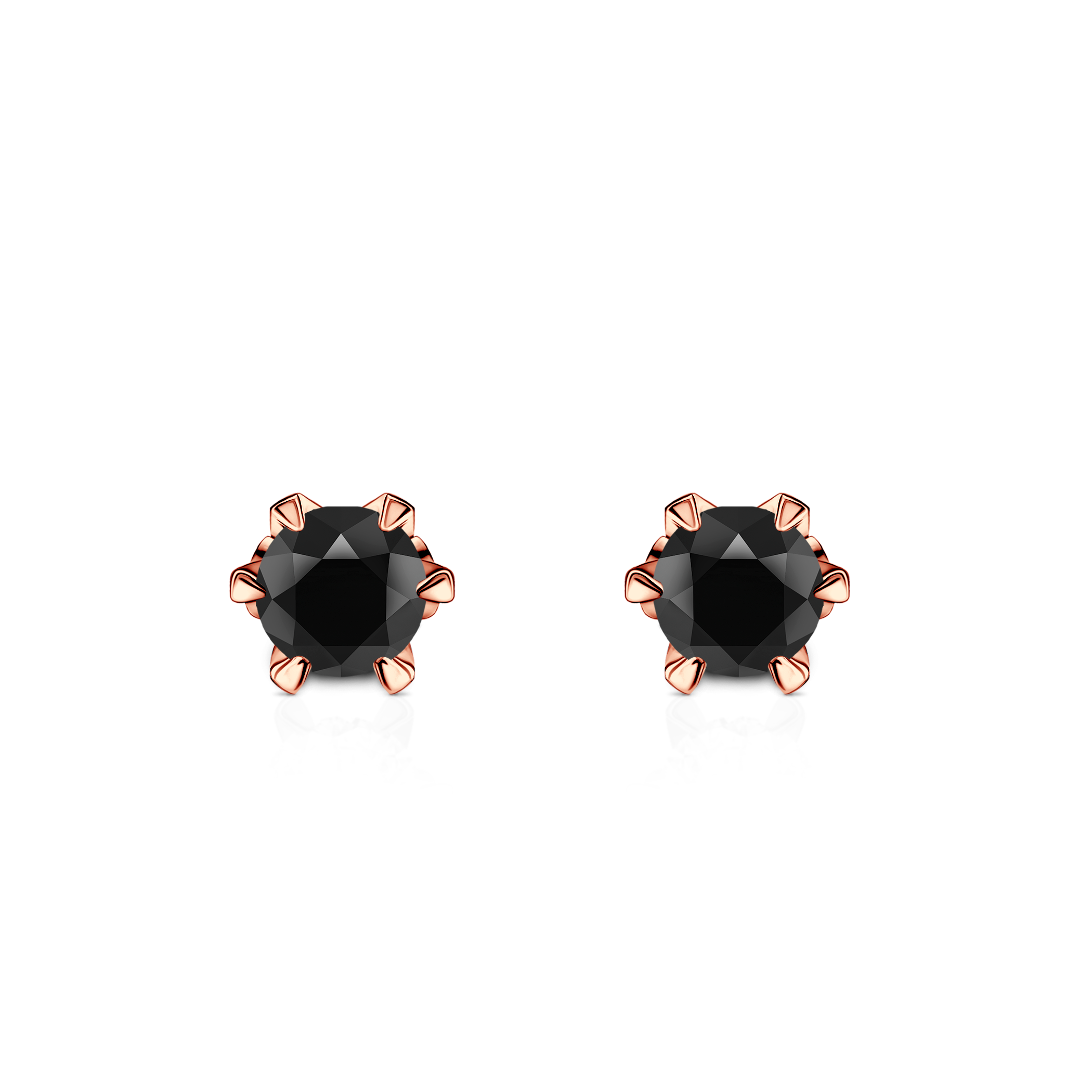 Kolczyki wykonane z 14-karatowego różowego złota (próba 585). W kolczykach zostały osadzone 2 czarne diamenty o szlifie brylantowym o łącznej masie 0,2 ct oraz 4 diamenty o wysokiej czystości SI2/H o łącznej masie 0,02 ct.