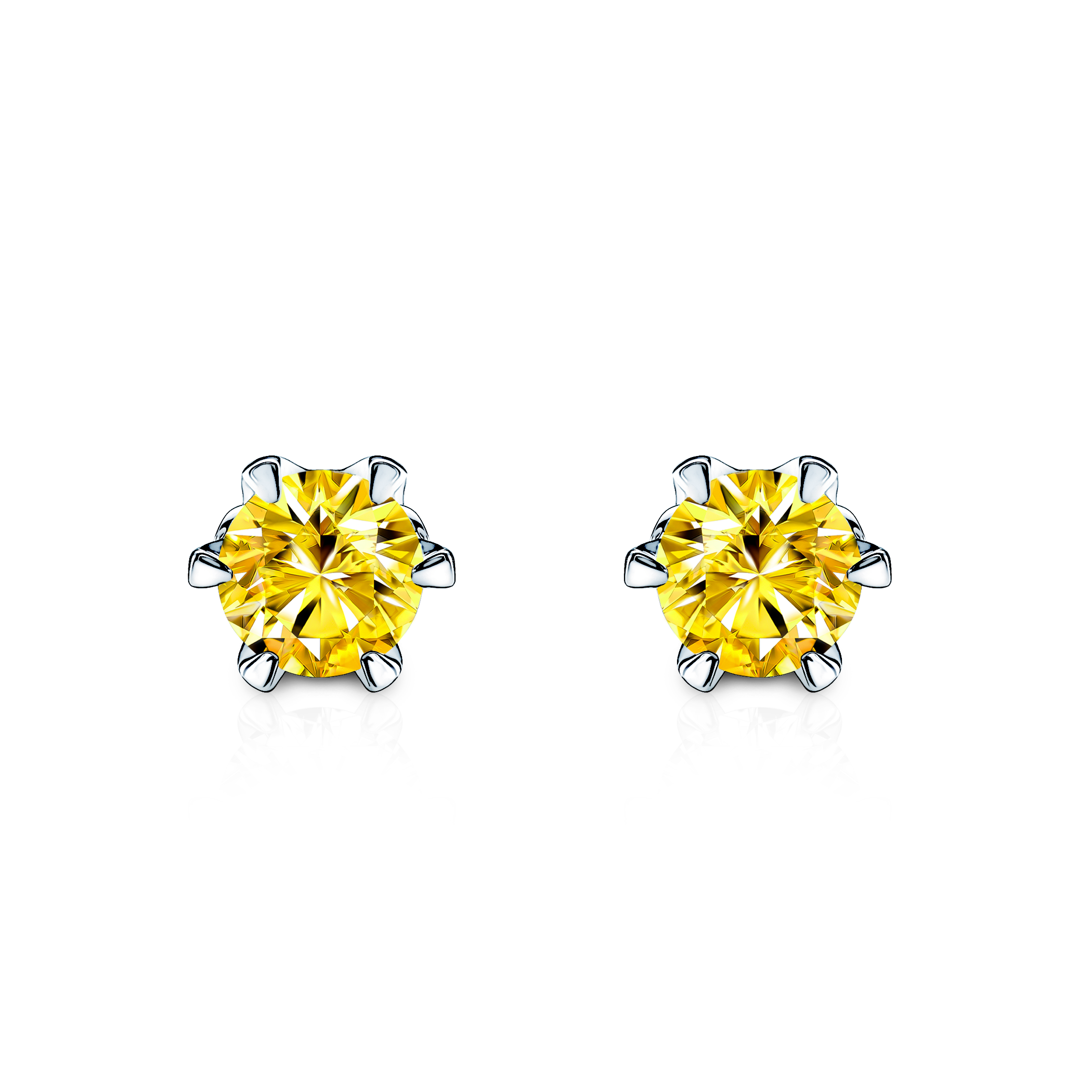 Kolczyki wykonane z 14-karatowego białego złota (próba 585). W kolczykach zostały osadzone 2 żółte szafiry o szlifie brylantowym z łączną masą 1,00 ct oraz 4 diamenty o wysokiej czystości SI2/H z łączną masą 0,06 ct.