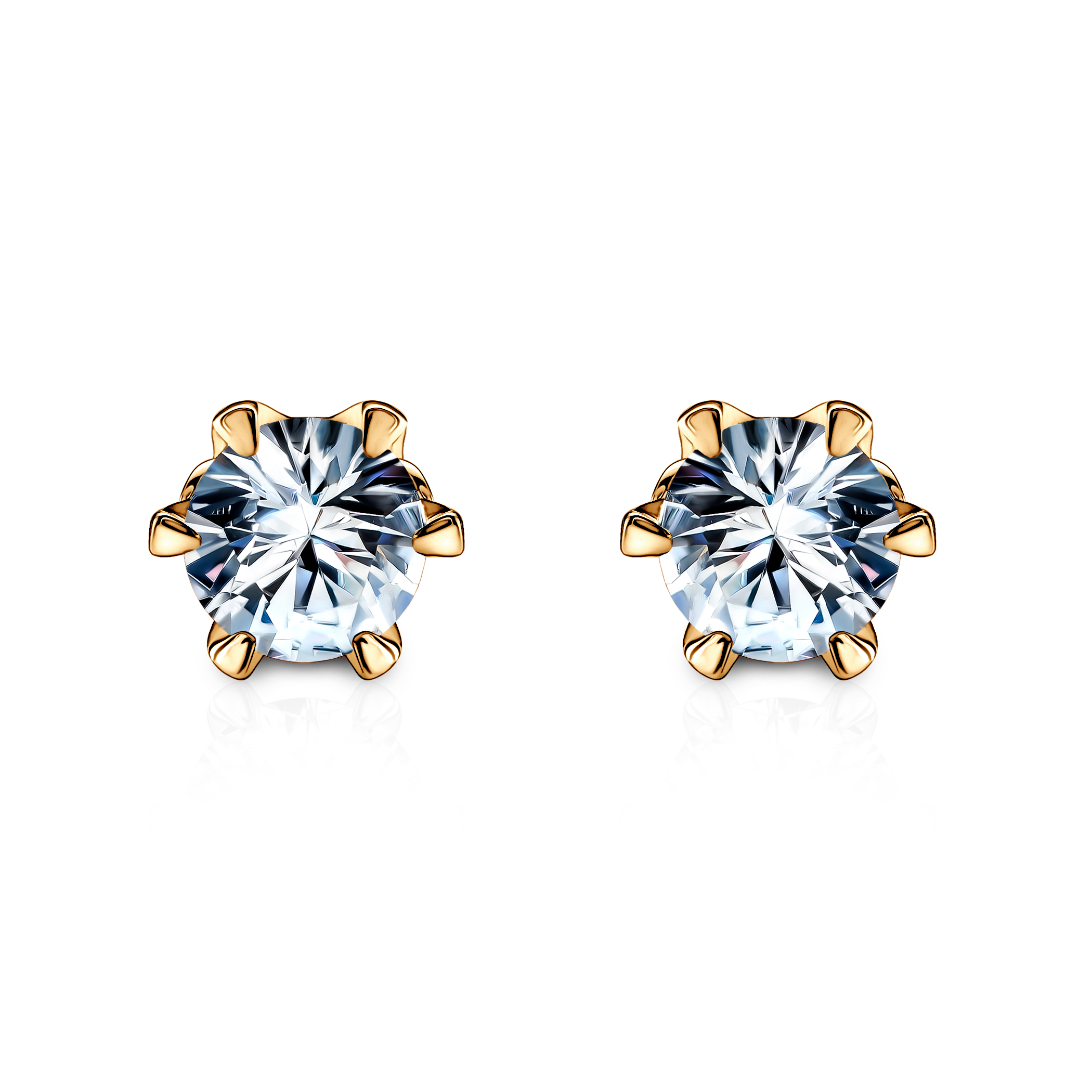 Kolczyki wykonane z 14-karatowego żółtego złota (próba 585). W kolczykach zostały osadzone 2 białe szafiry o szlifie brylantowym z łączną masą 2,00 ct oraz 4 diamenty o wysokiej czystości SI2/H z łączną masą 0,06 ct.