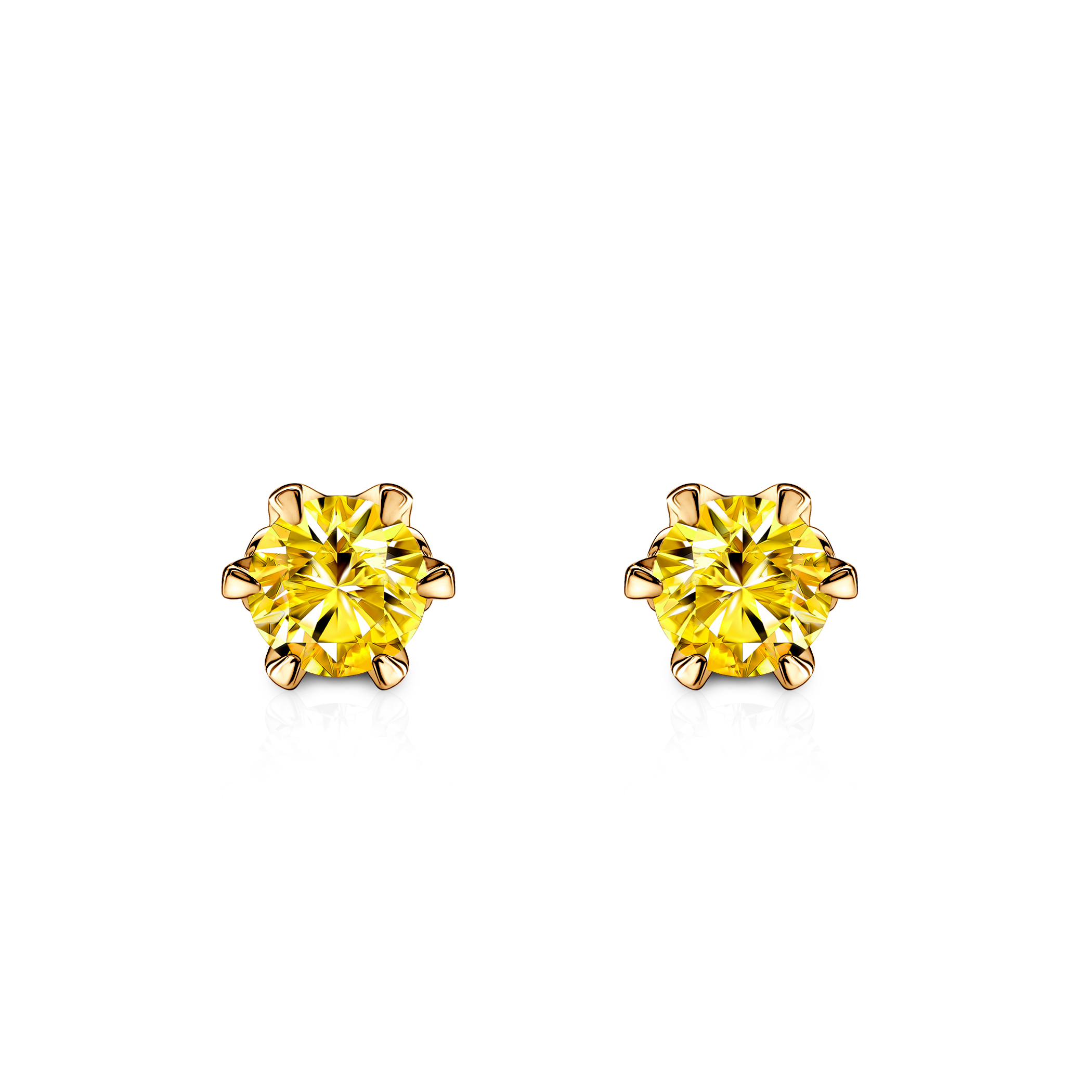 Kolczyki wykonane z 14-karatowego żółtego złota (próba 585). W kolczykach zostały osadzone 2 żółte szafiry o szlifie brylantowym z łączną masą 0,40 ct oraz 4 diamenty o wysokiej czystości SI2/H z łączną masą 0,06 ct.