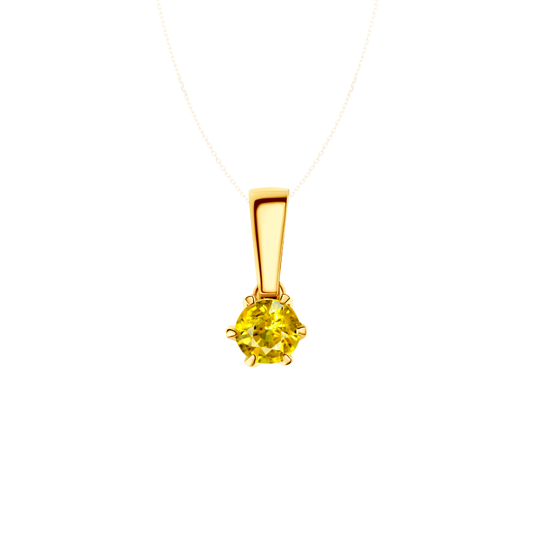 Zawieszka wykonana z 14-karatowego żółtego złota (próba 585). W zawieszce został osadzony żółty szafir o masie 0,50 ct i szlifie brylantowym oraz dwa diamenty o łącznej masie 0,03 ct, wysokiej czystości SI2/H.