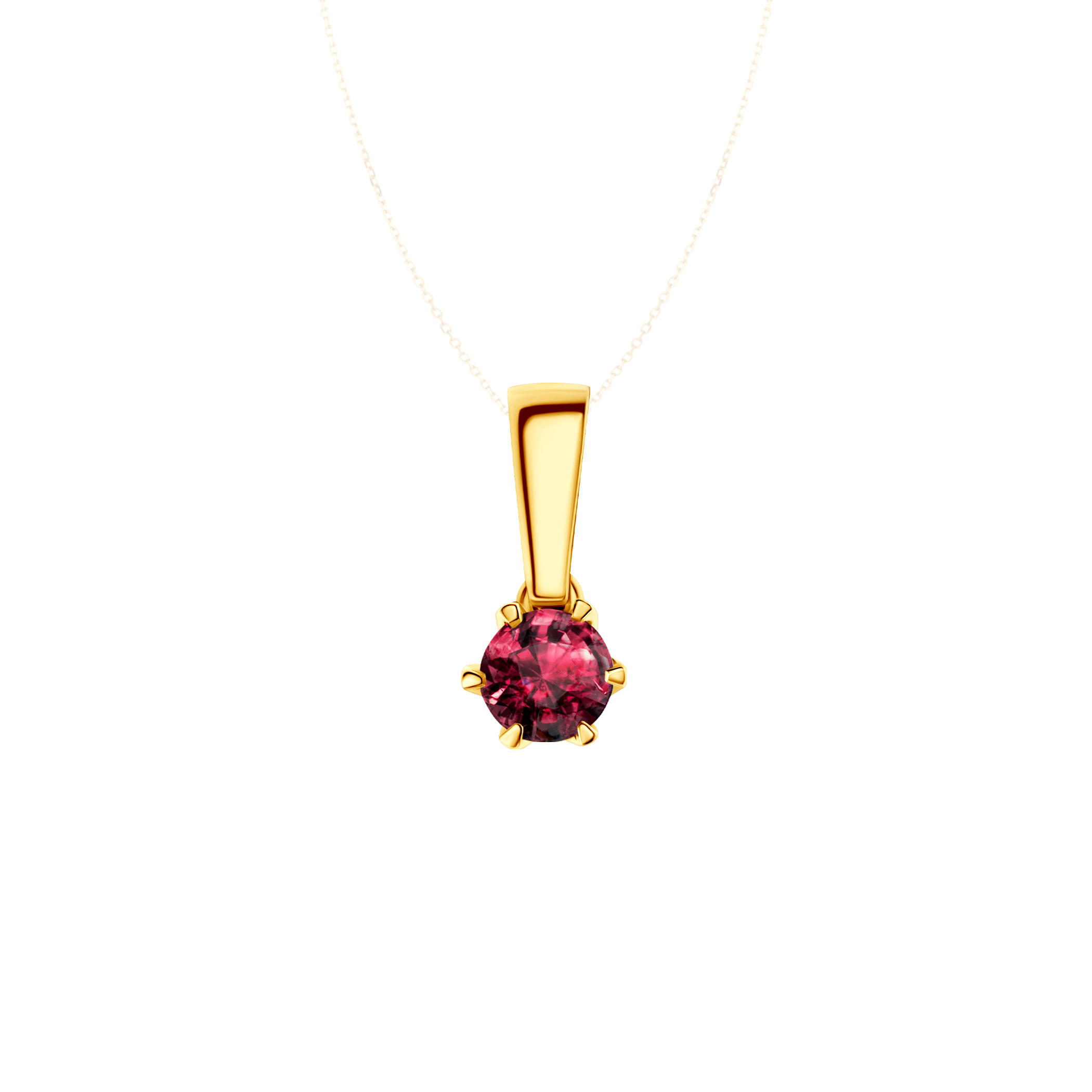 Zawieszka wykonana z 14-karatowego żółtego złota (próba 585). W zawieszce został osadzony rubin o masie 0,50 ct i szlifie brylantowym oraz dwa diamenty o łącznej masie 0,03 ct, wysokiej czystości SI2/H.