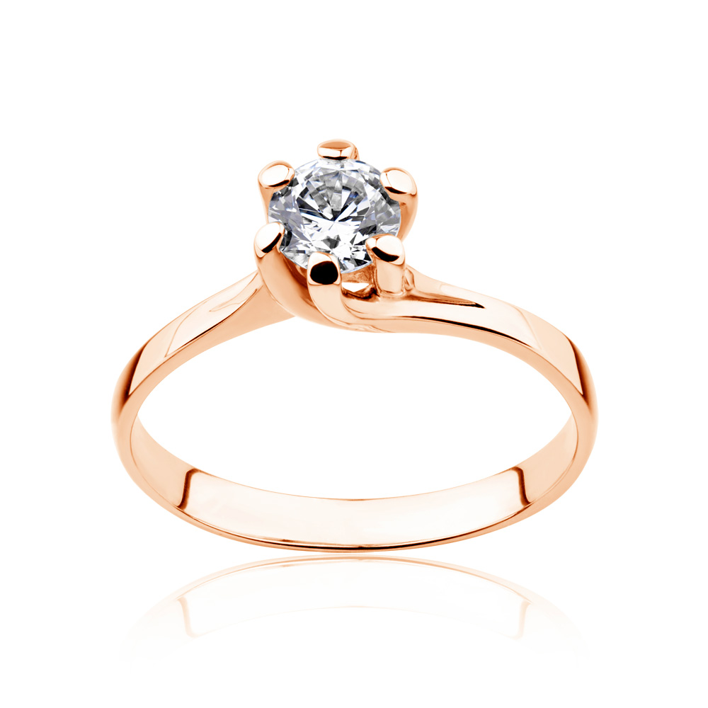 Pierścionek zaręczynowy z diamentem 0,50 ct o szlifie brylantowym wysokiej czystości SI/H, wykonany z 14-karatowego różowego złota (próba 0,585).