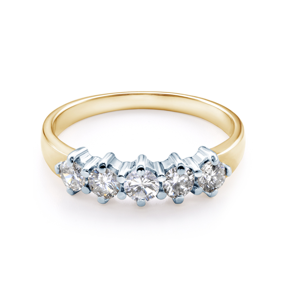 Pierścionek z diamentami o łącznej masie 0,40 ct oraz perfekcyjnym szlifie brylantowym (wszystkie diamenty w naszym sklepie objęte są wieczystą gwarancją oraz posiadają oryginalny certyfikat jakości, wystawiany przez naszą firmę). Wykonany z połączenia 14-karatowego białego i żółtego złota (próba 585).