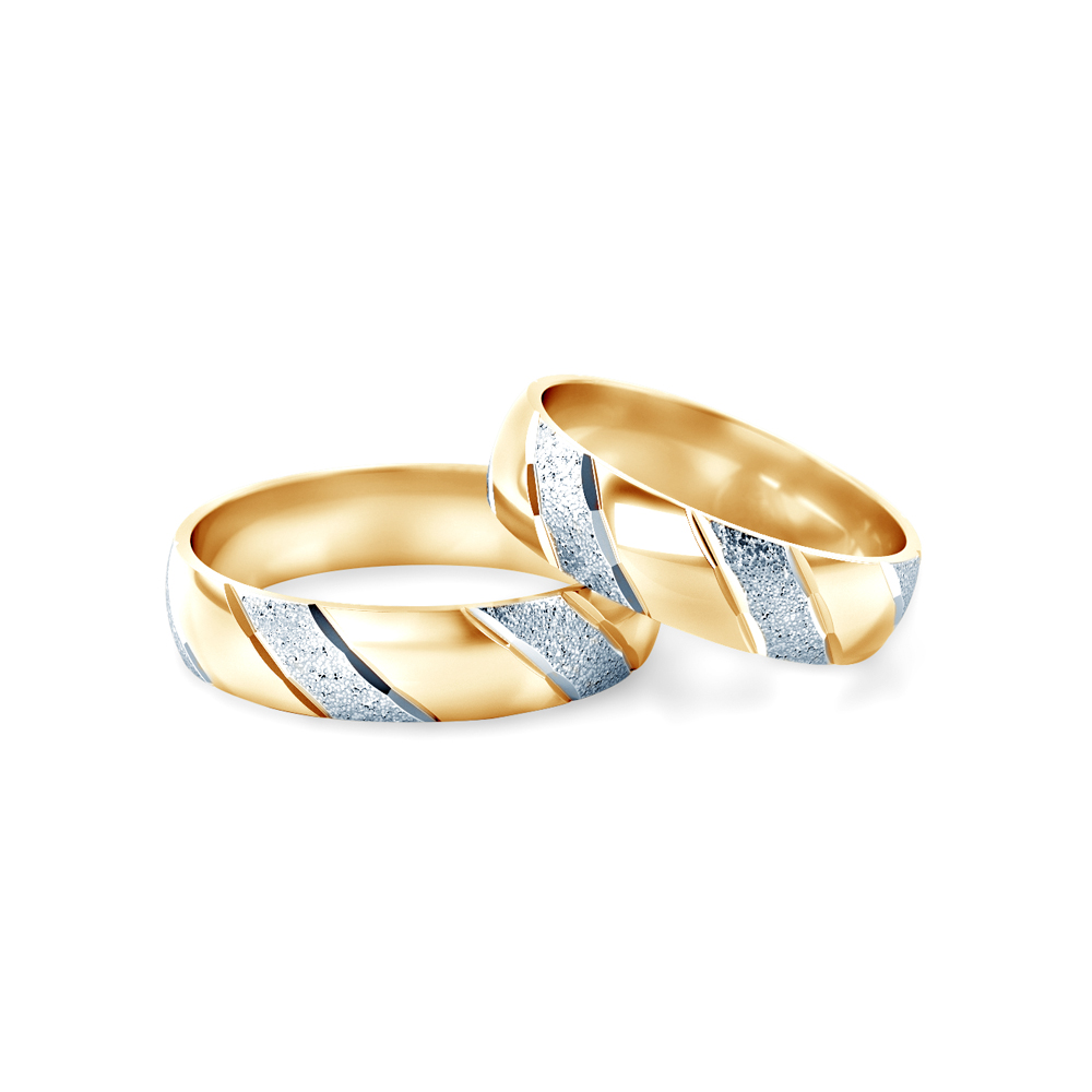 Obrączki ślubne wykonane z połączenia żółtego oraz białego złota (próba 0,333/0,585/0,750).