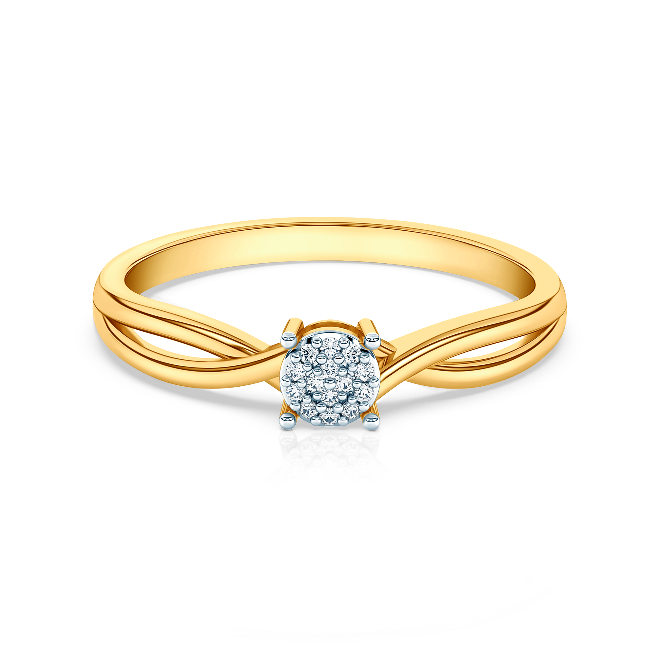 | Pierścionek zaręczynowy z 14 diamentami o łącznej masie 0,04ct i parametrach SI2/H w szlifie brylantowym. Wykonany został z 14-karatowego dwukolorowego złota (próba 585). |