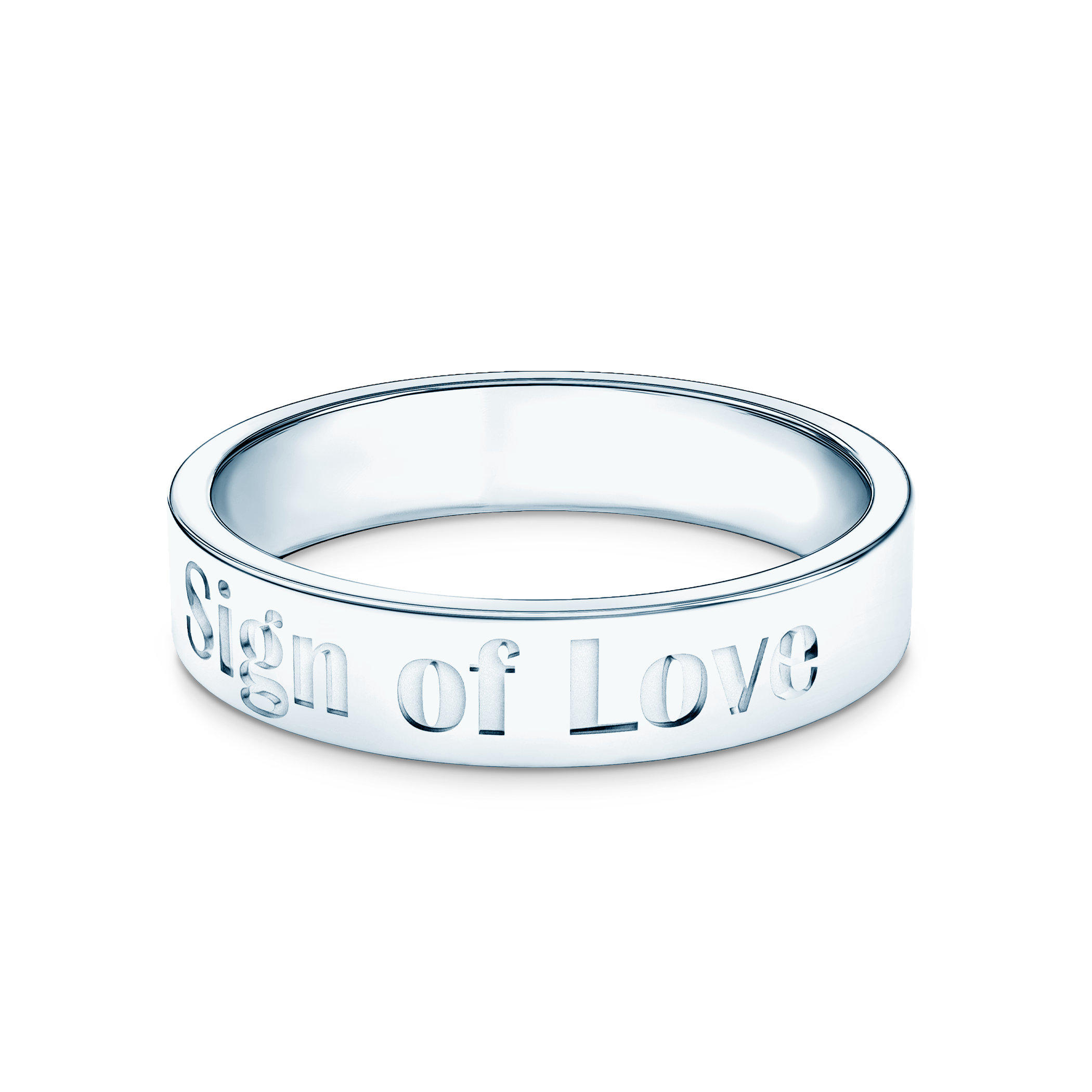 Obrączka partnerska Sign of Love® wykonana z białego złota (próba 585) o szerokości 4mm. Obrączka posiada grawer Sign of Love - na życzenie klienta grawerujemy dowolną sentencję.