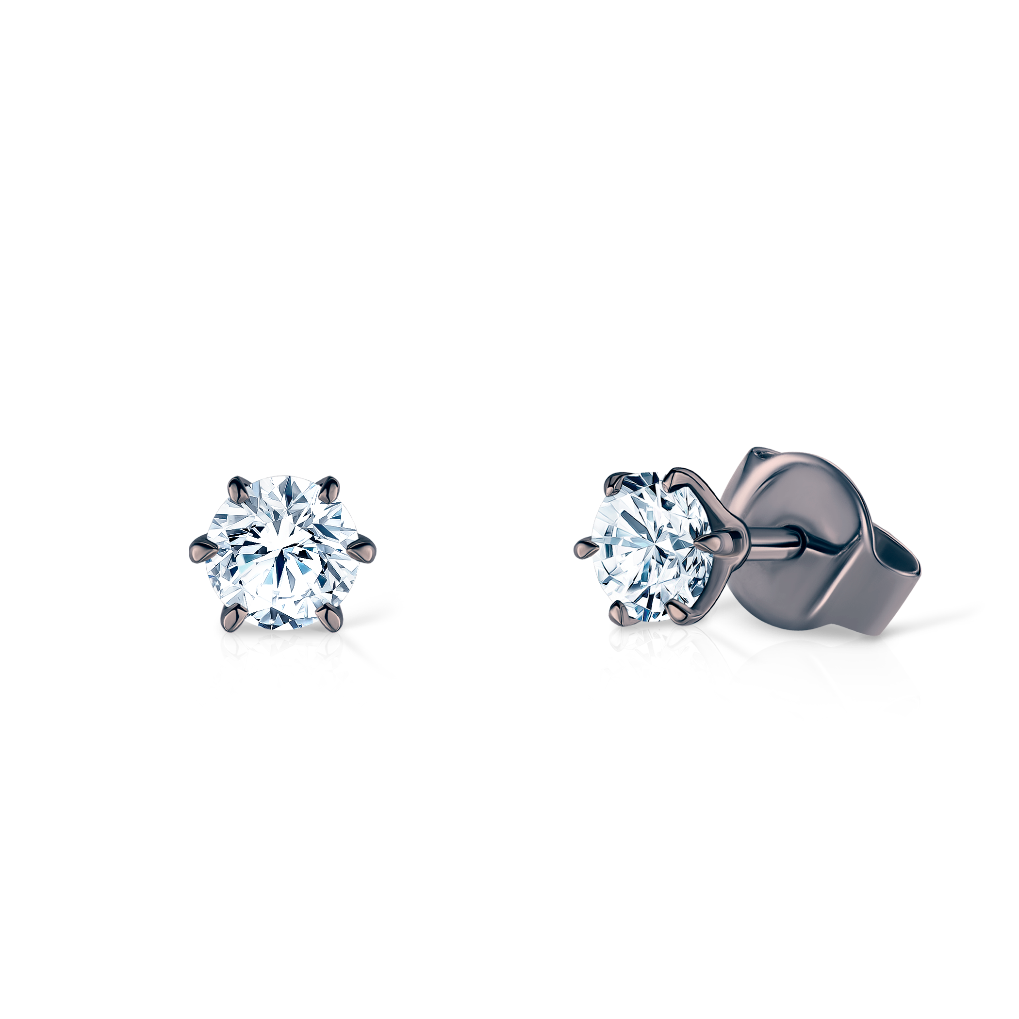 Kolczyki wykonane z 14-karatowego czarnego złota (próba 585). W kolczykach zostały osadzone 2 diamenty o szlifie brylantowym o łącznej masie 0,3 ct.