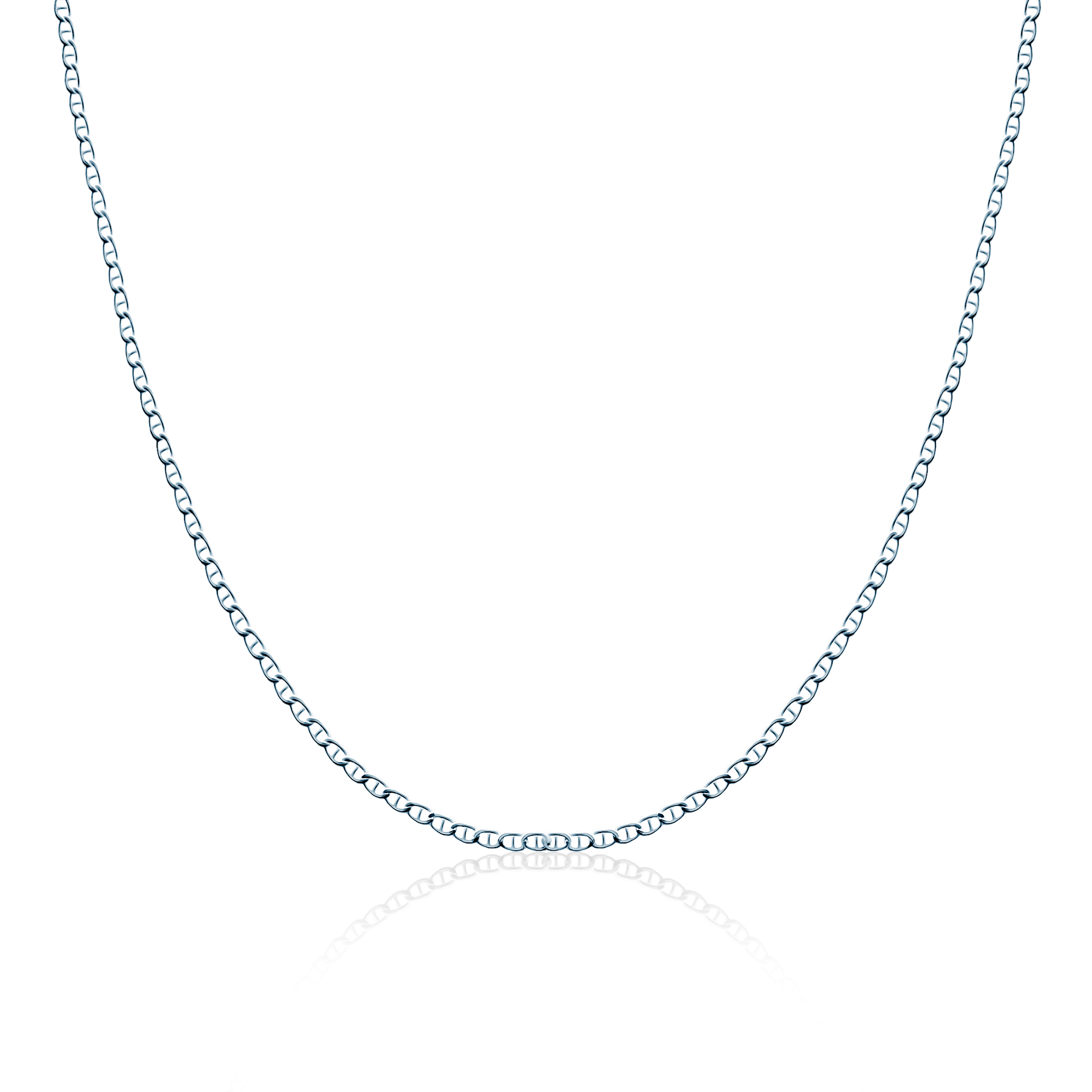 Złoty łańcuszek wykonany z 14-karatowego białego złota (próba 585) o szerokości 1,35 mm.