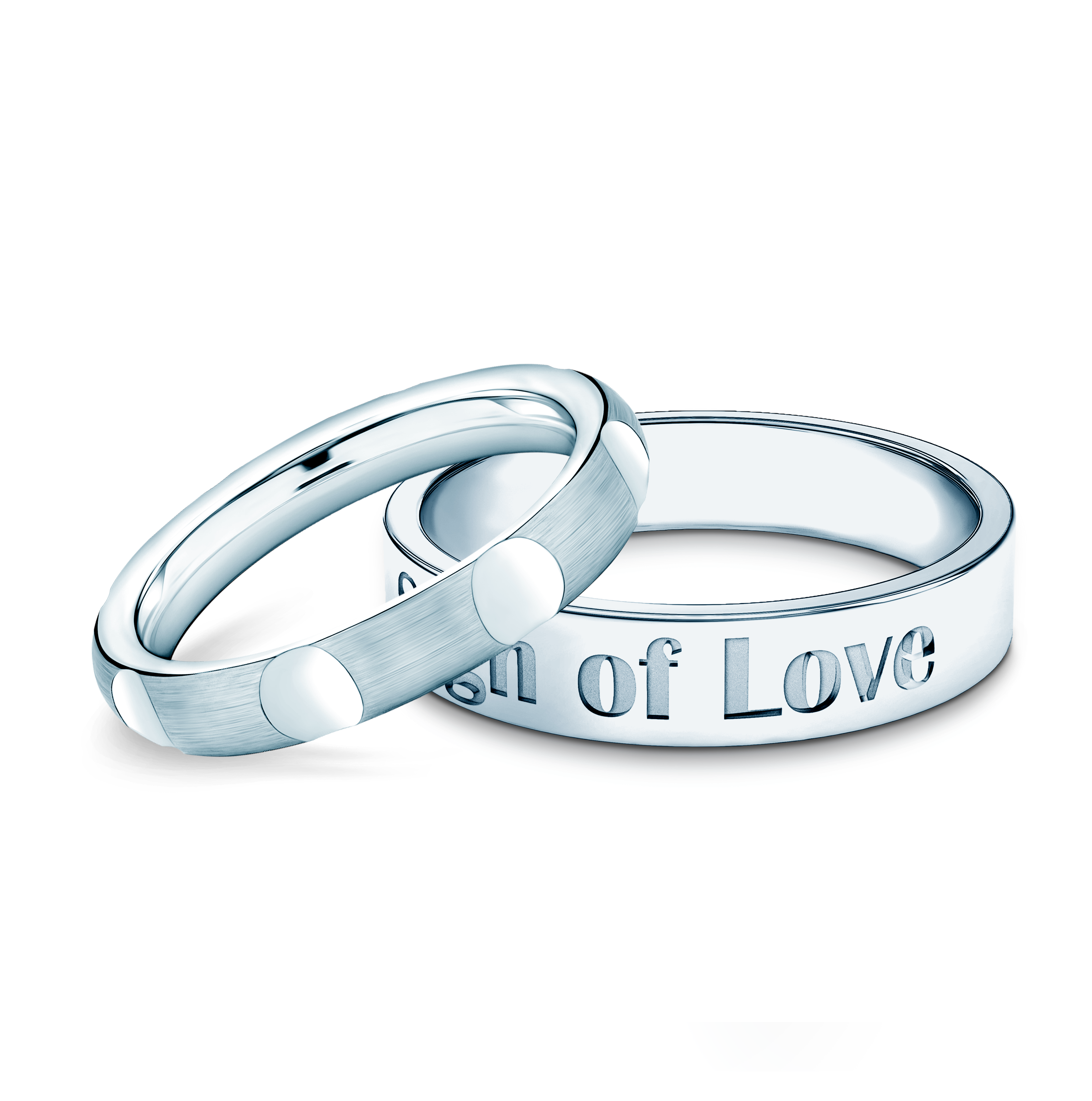 Obrączki partnerskie Sign of Love® wykonane z białego złota (próba 585) o szerokości 3,5mm, matowa i 4mm, polerowana, obrączka ta posiada grawer Sign of Love- na życzenie klienta grawerujemy dowolną sentencję.